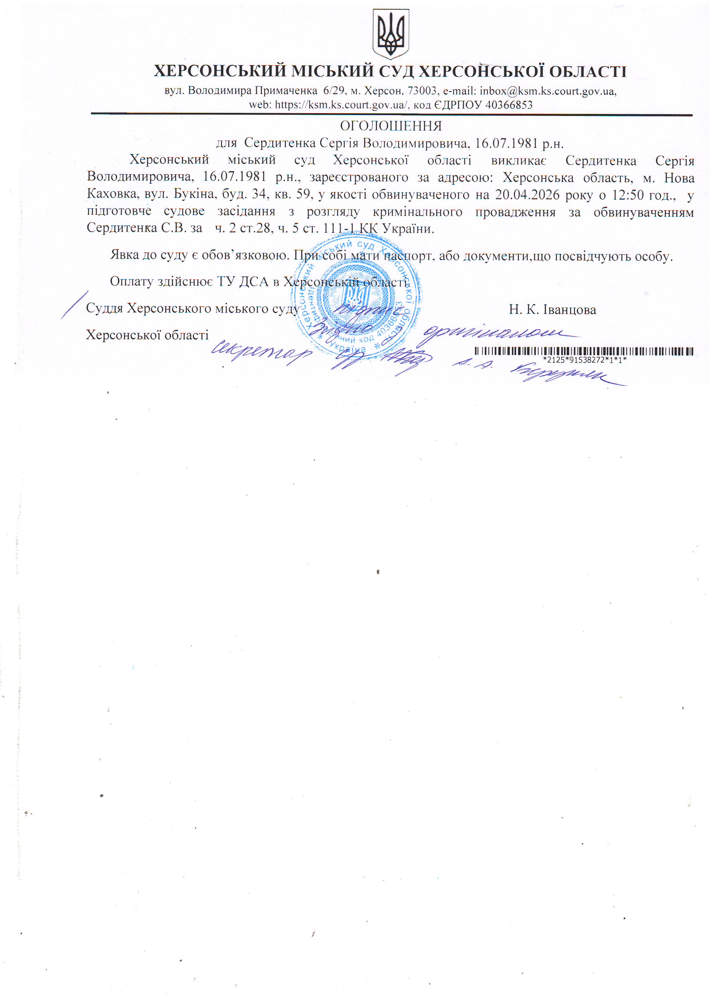 Інформація про місцезнаходження Херсонського міського суду Херсонської області