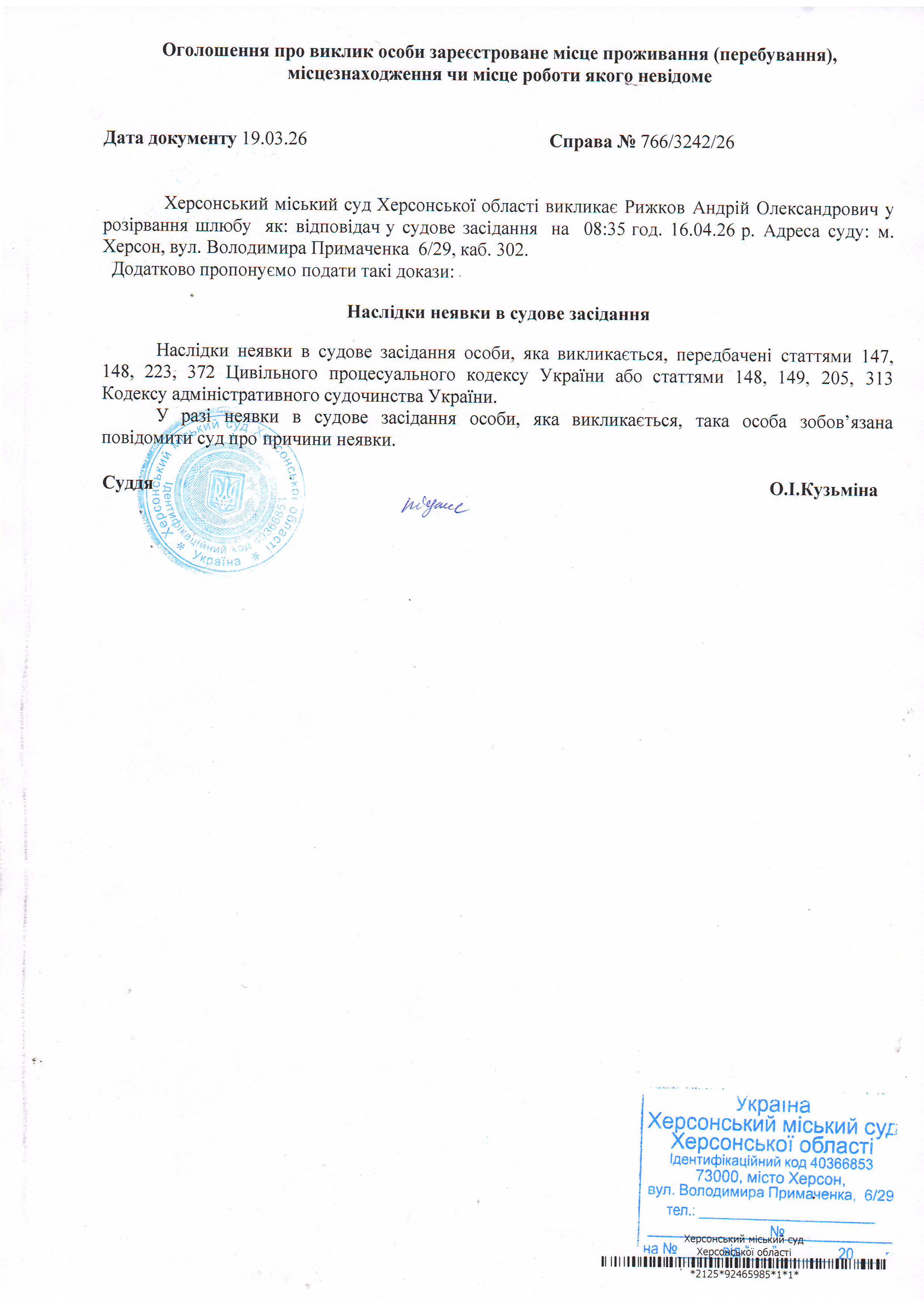 ОГОЛОШЕННЯ ПРО ВИКЛИК ДО СУДУ