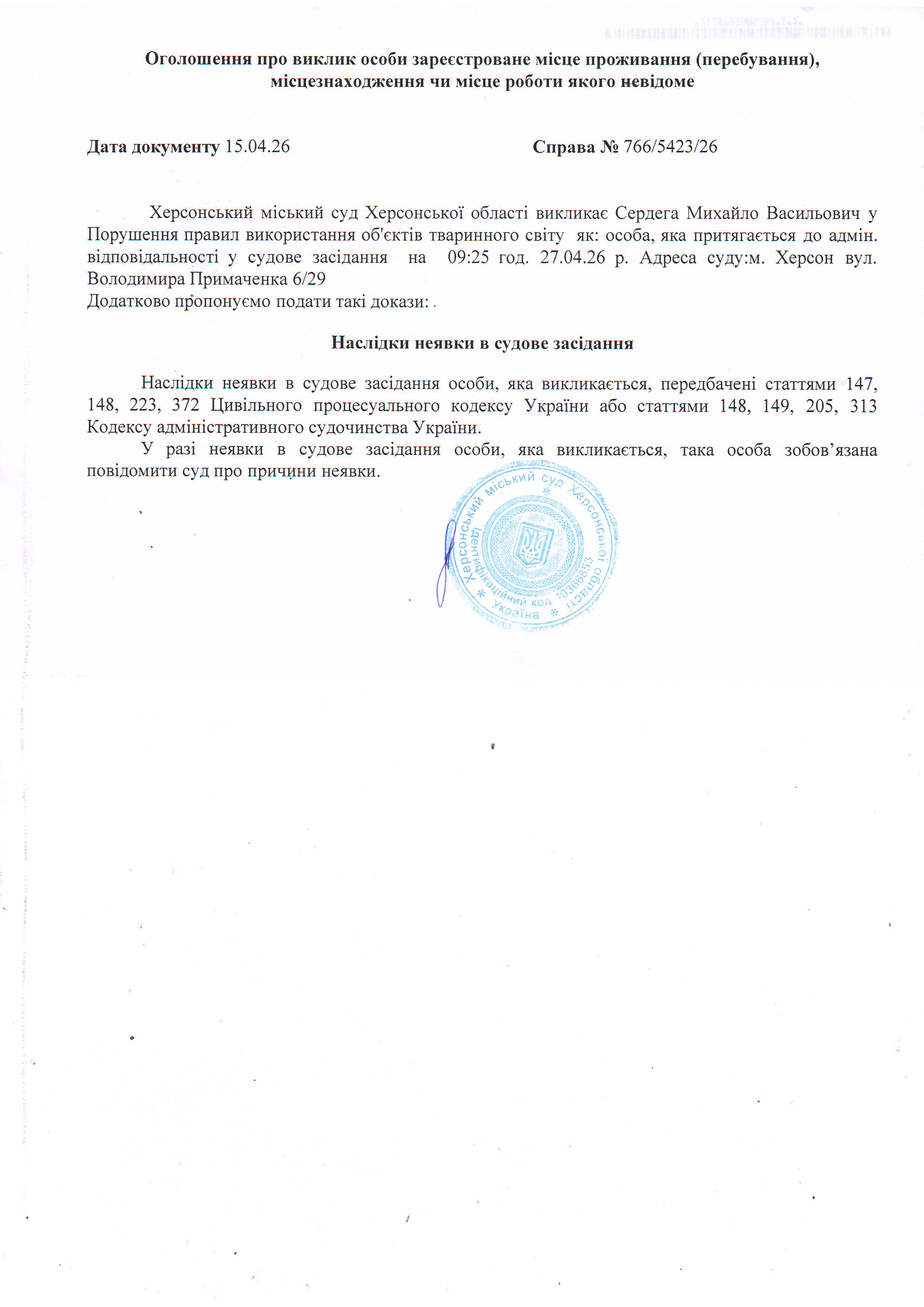 ОГОЛОШЕННЯ ПРО ВИКЛИК ДО СУДУ