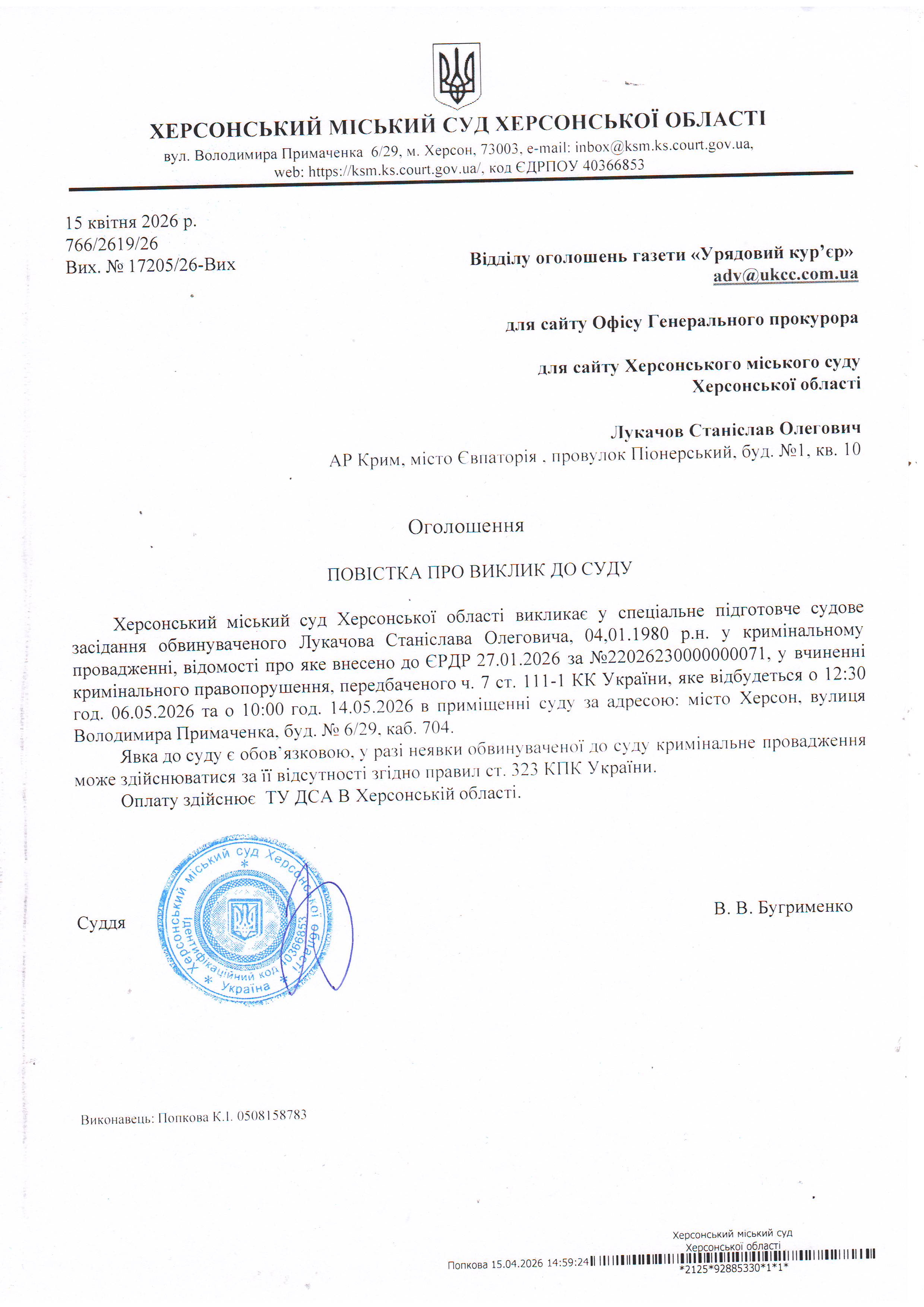 ОГОЛОШЕННЯ ПРО ВИКЛИК ДО СУДУ