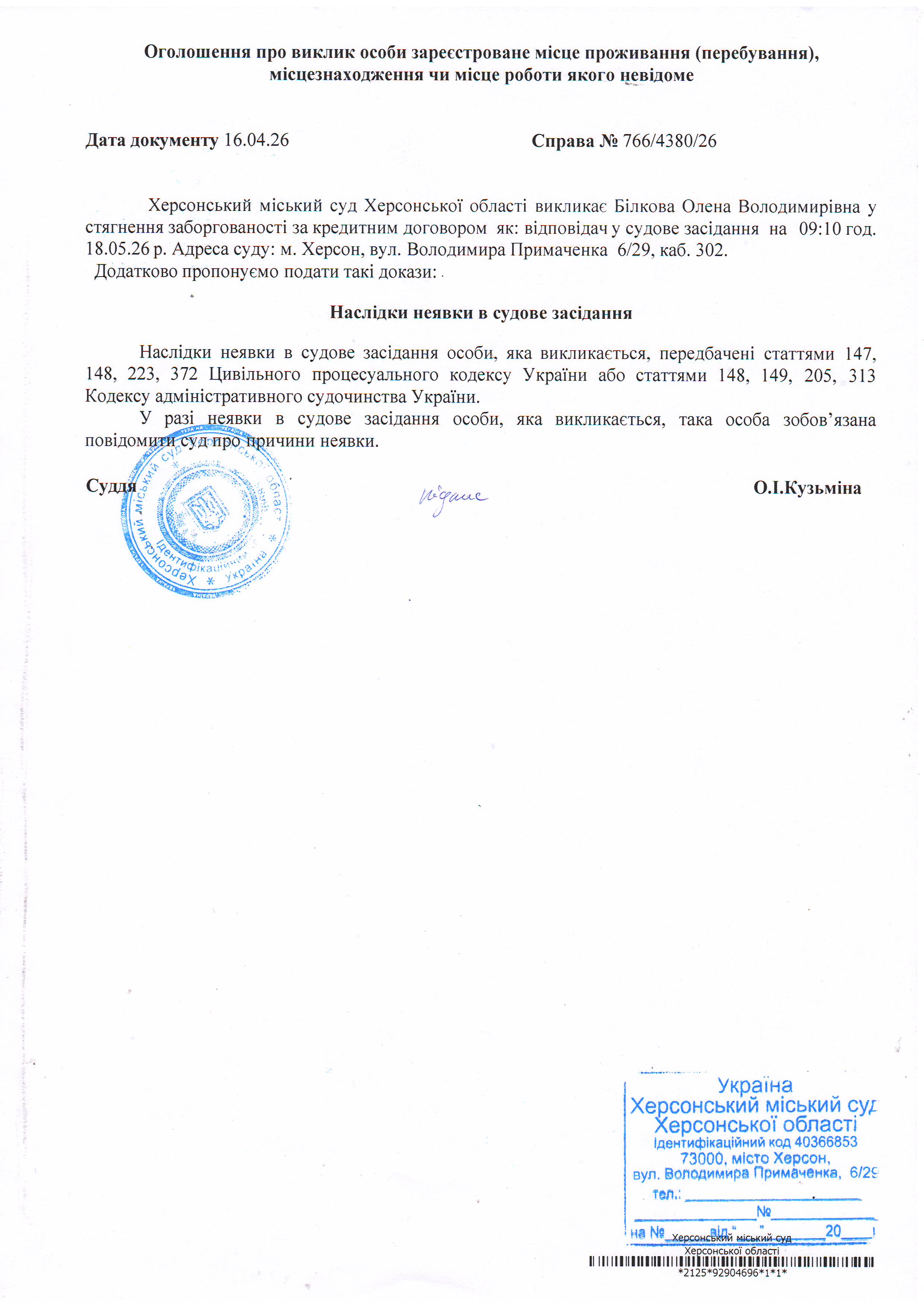 ОГОЛОШЕННЯ ПРО ВИКЛИК ДО СУДУ