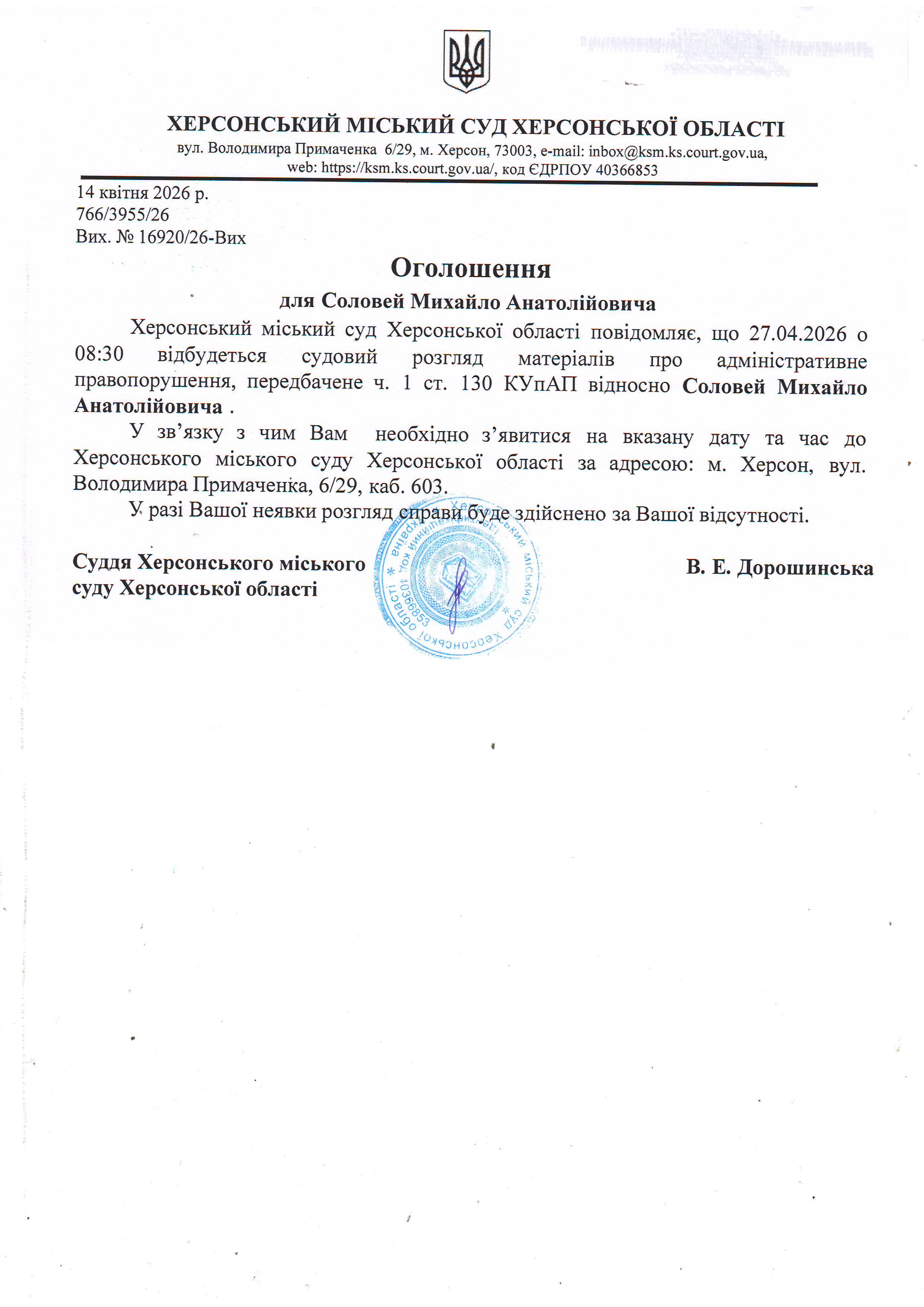 ОГОЛОШЕННЯ ПРО ВИКЛИК ДО СУДУ