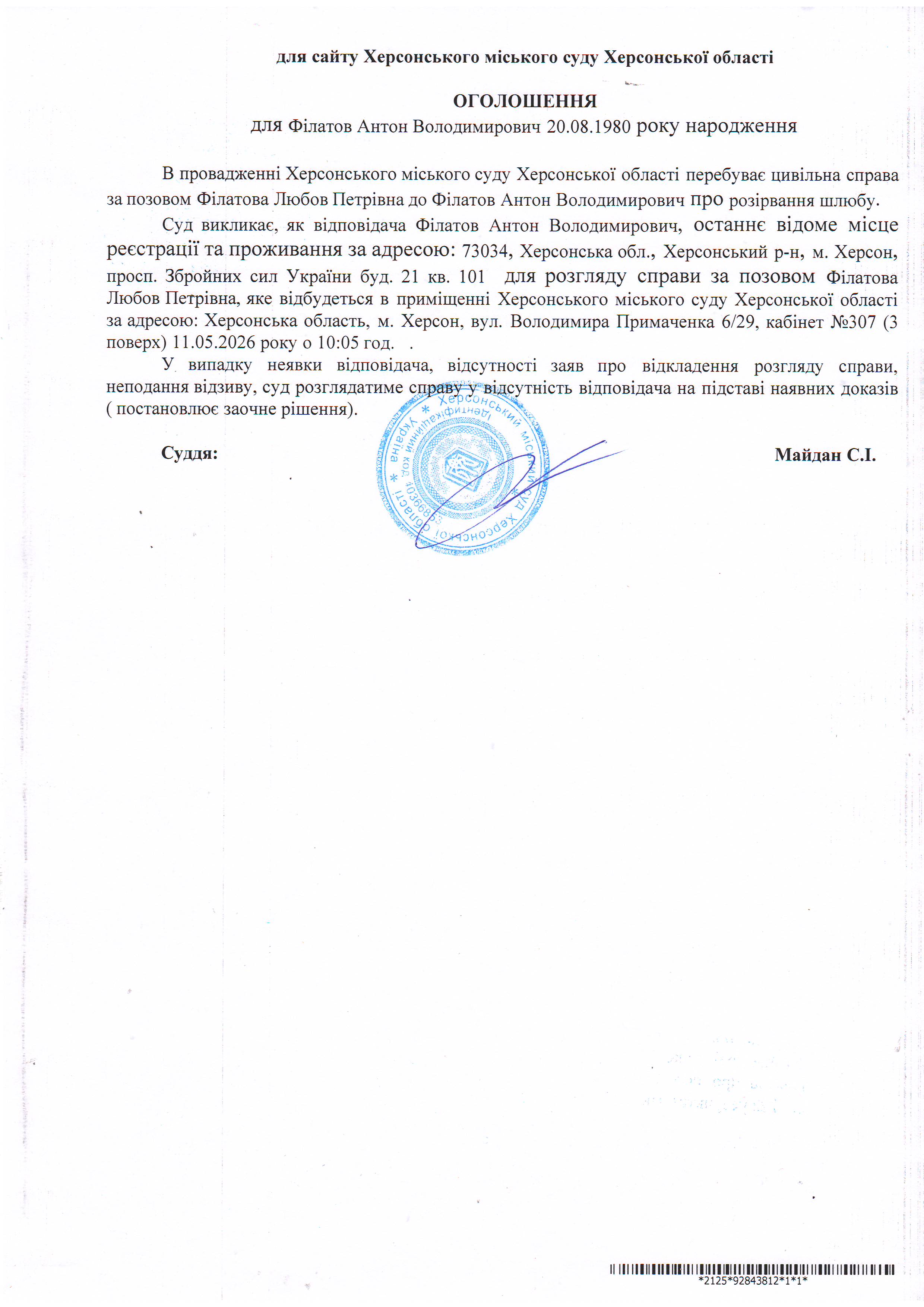 ОГОЛОШЕННЯ ПРО ВИКЛИК ДО СУДУ