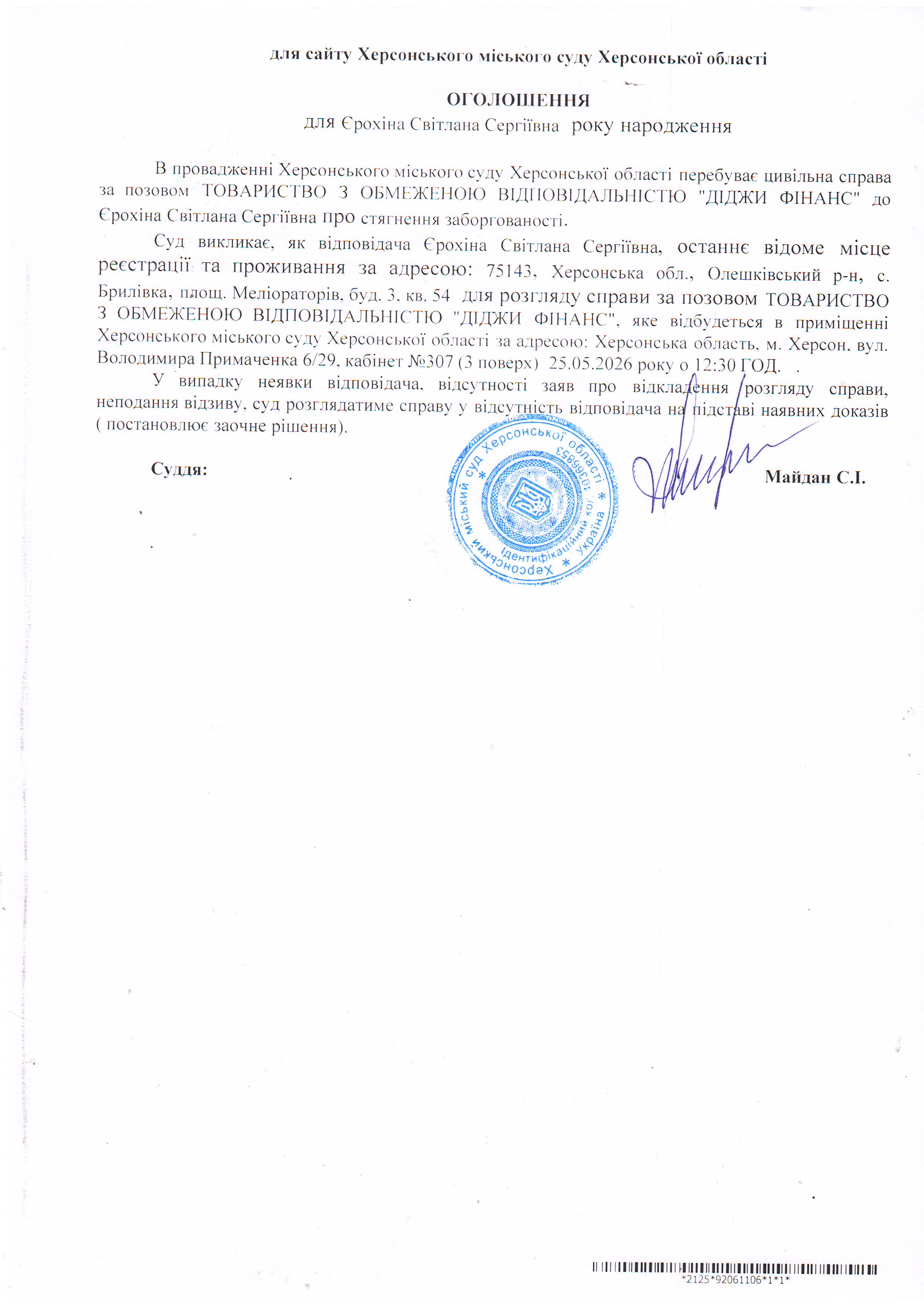 ОГОЛОШЕННЯ ПРО ВИКЛИК ДО СУДУ