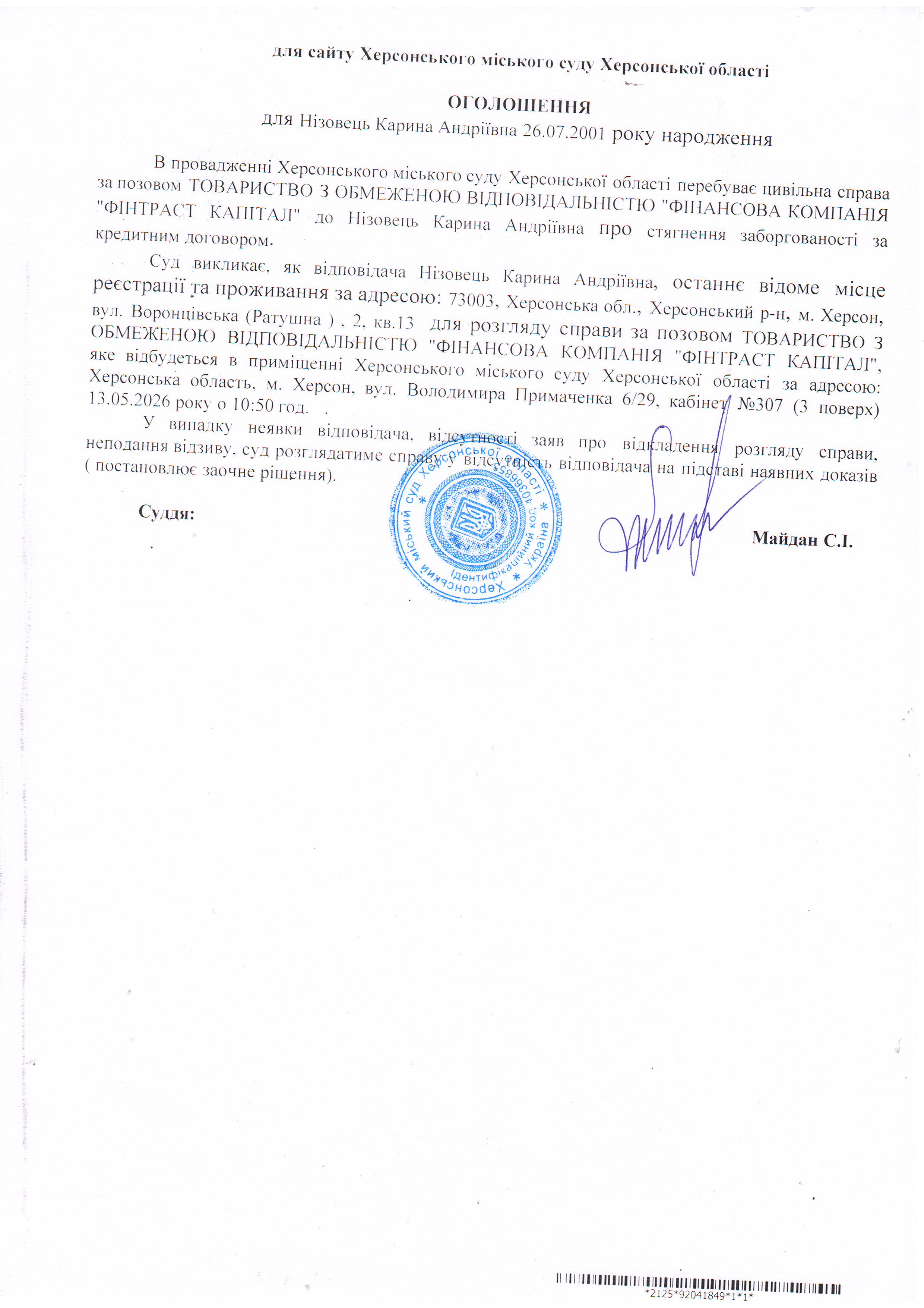 ОГОЛОШЕННЯ ПРО ВИКЛИК ДО СУДУ