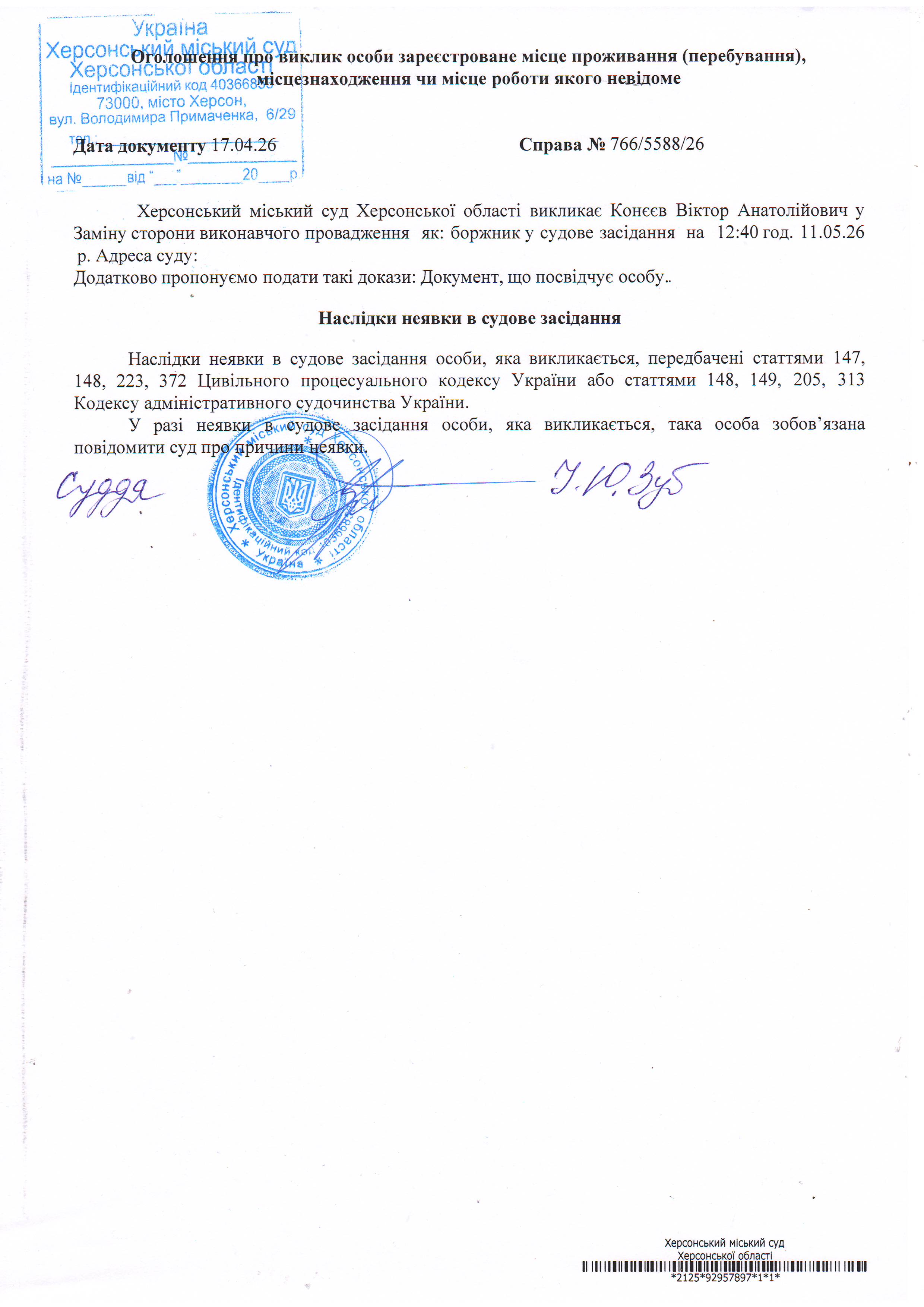 ОГОЛОШЕННЯ ПРО ВИКЛИК ДО СУДУ
