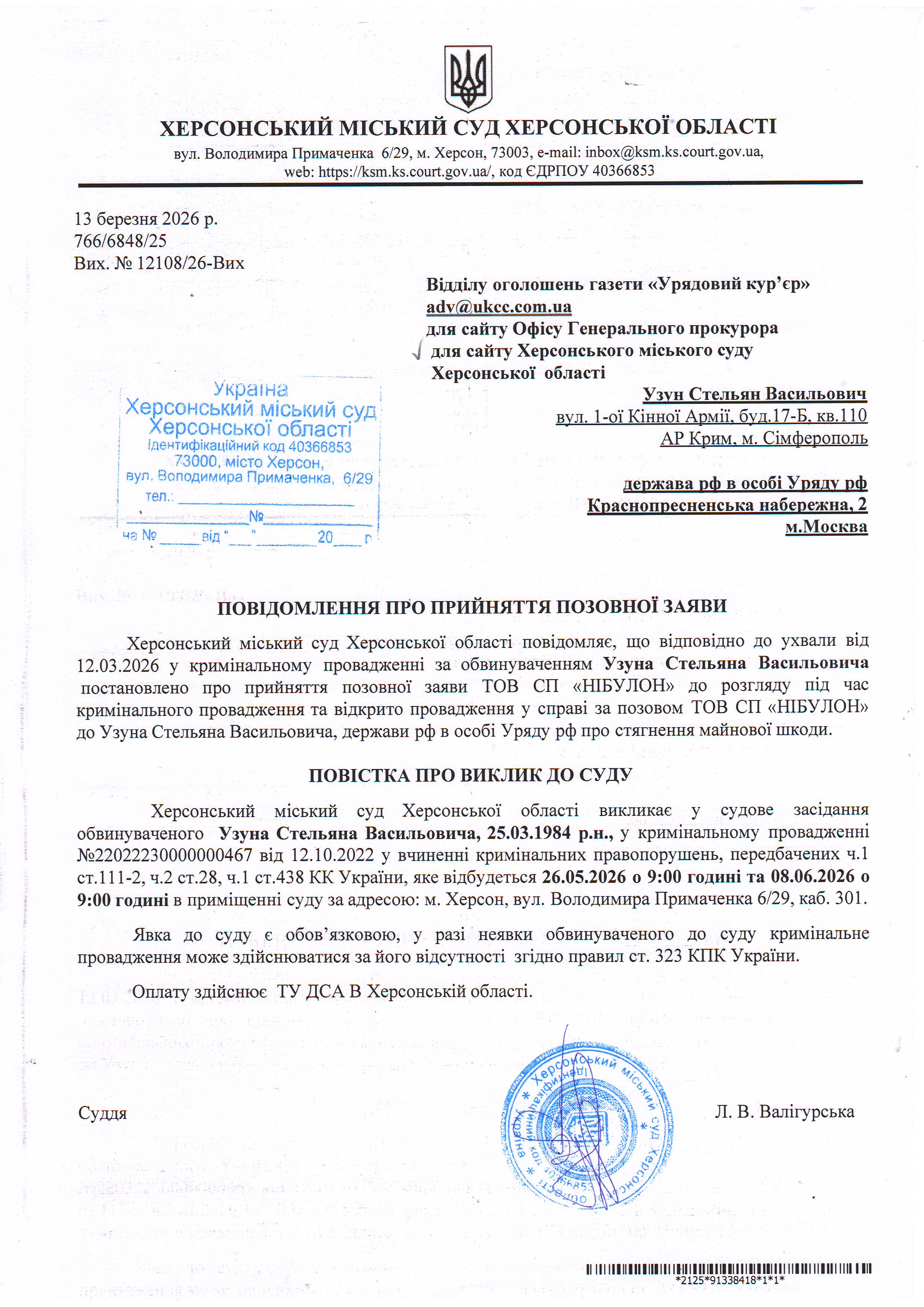 ОГОЛОШЕННЯ ПРО ВИКЛИК ДО СУДУ