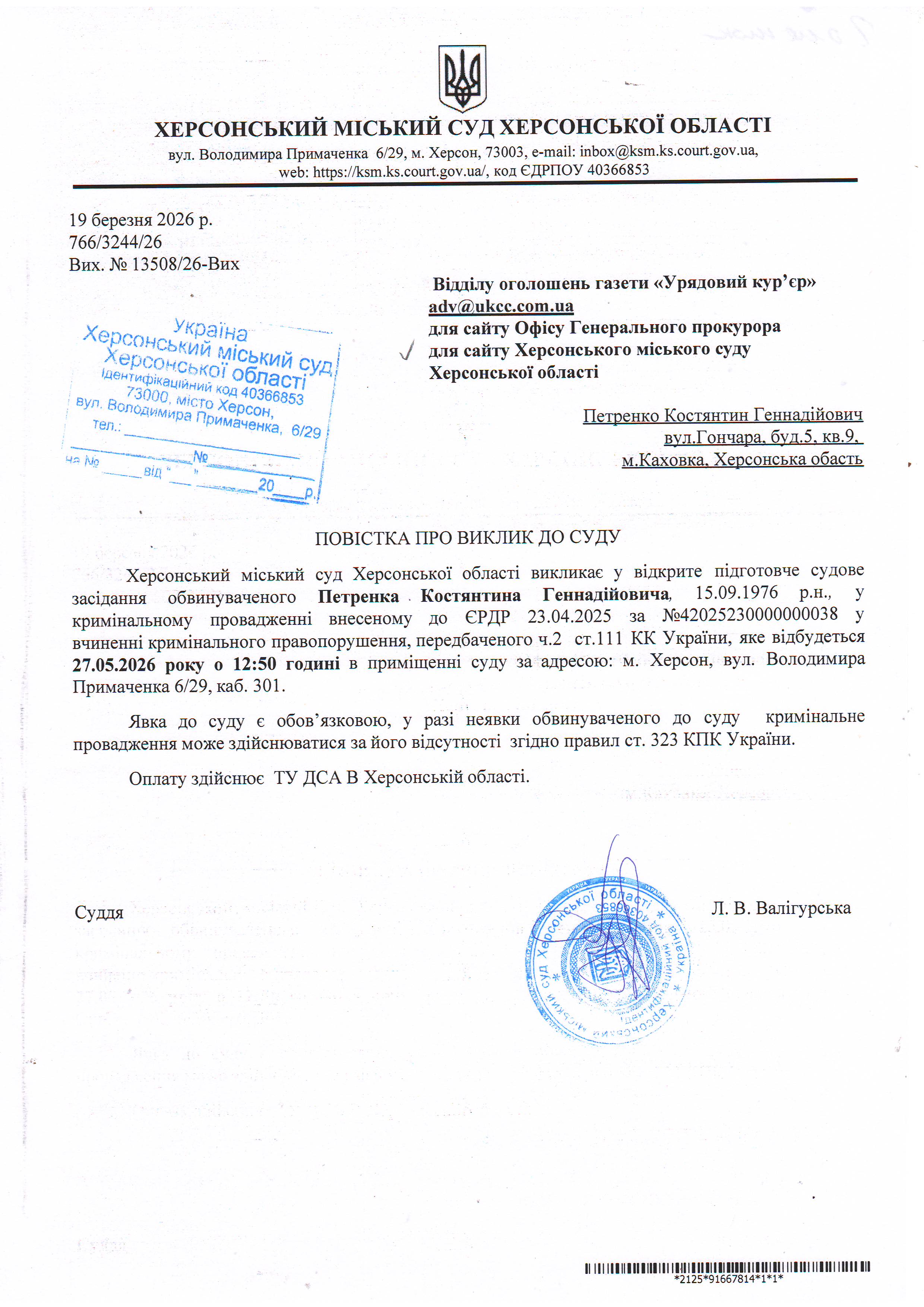 ОГОЛОШЕННЯ ПРО ВИКЛИК ДО СУДУ