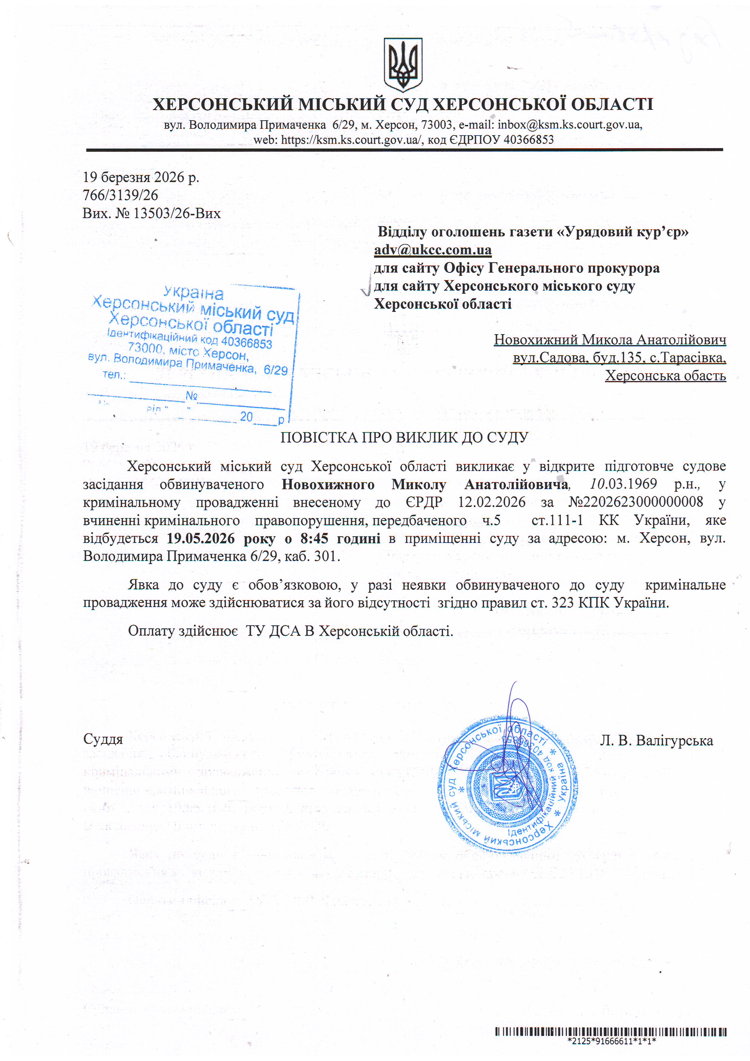 ОГОЛОШЕННЯ ПРО ВИКЛИК ДО СУДУ