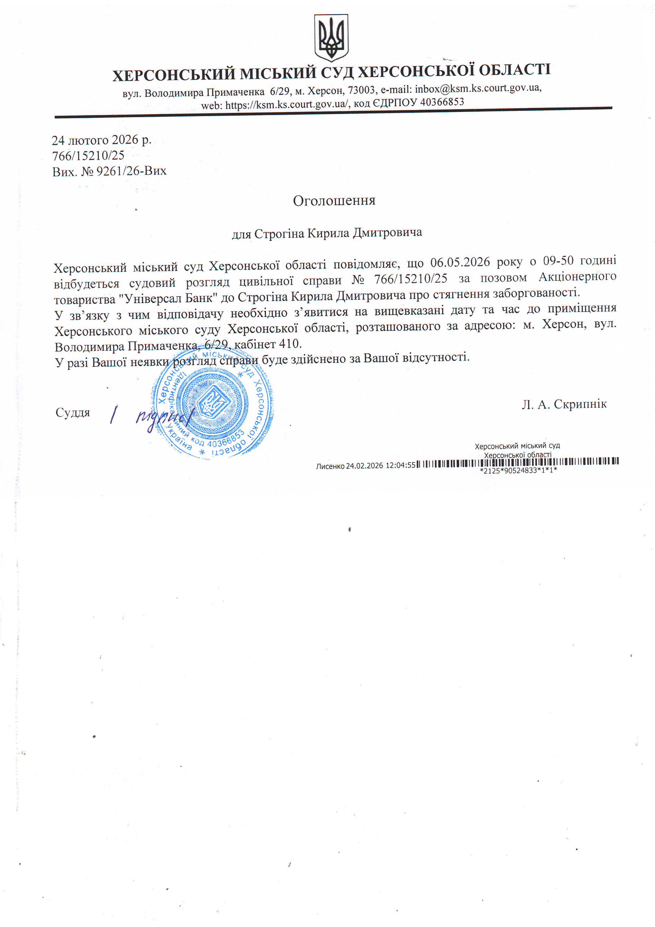 ОГОЛОШЕННЯ ПРО ВИКЛИК ДО СУДУ