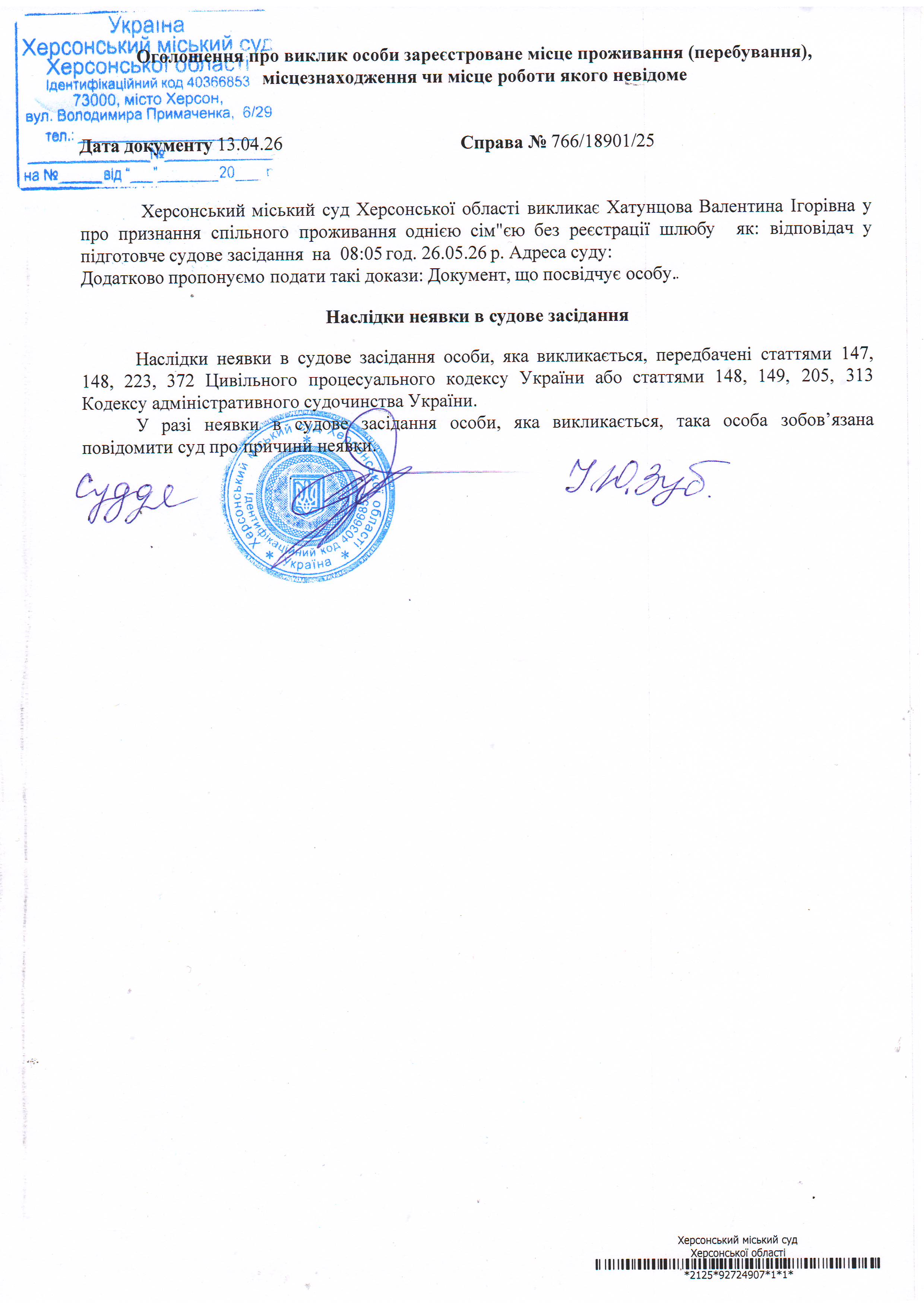 ОГОЛОШЕННЯ ПРО ВИКЛИК ДО СУДУ
