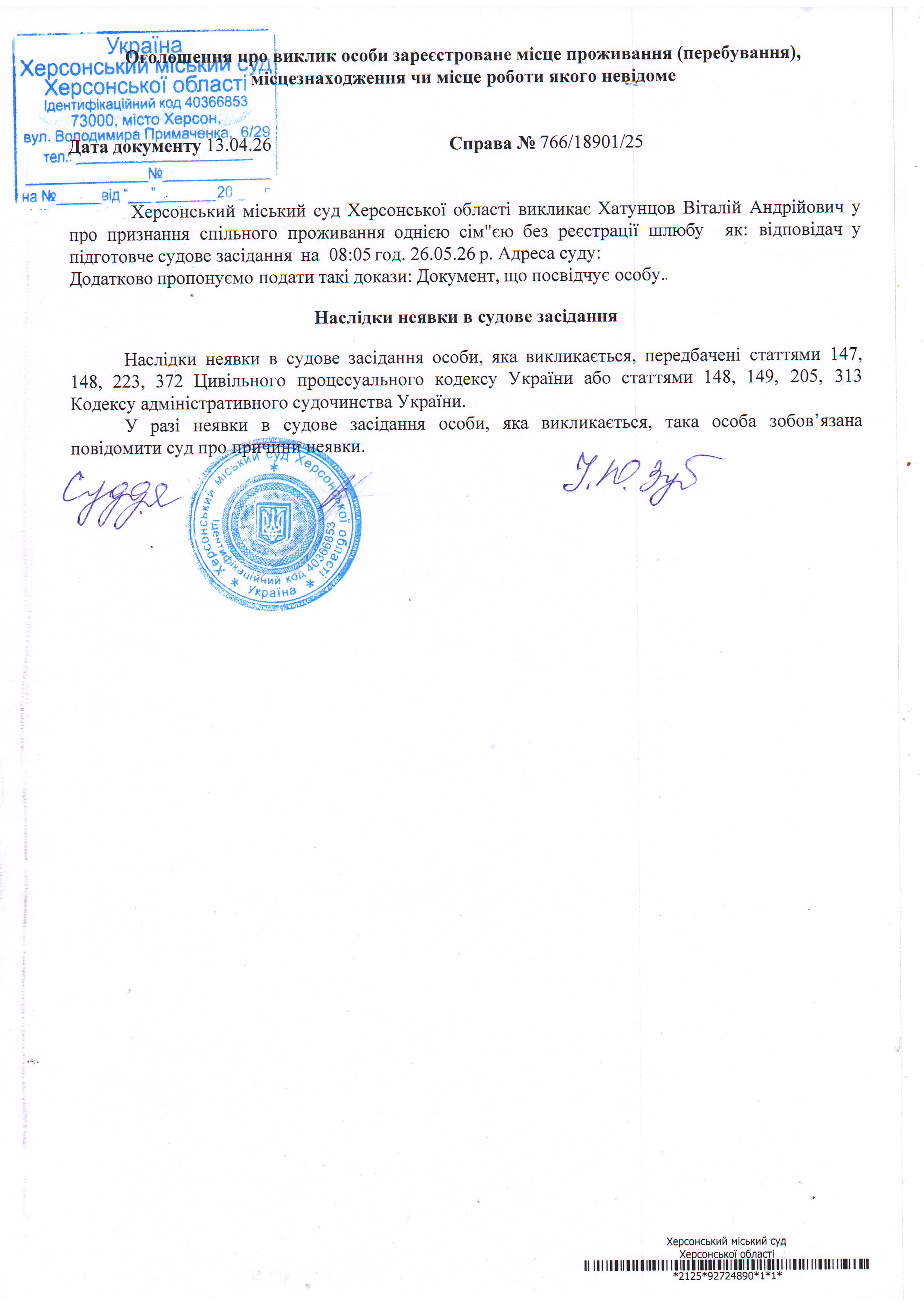 ОГОЛОШЕННЯ ПРО ВИКЛИК ДО СУДУ