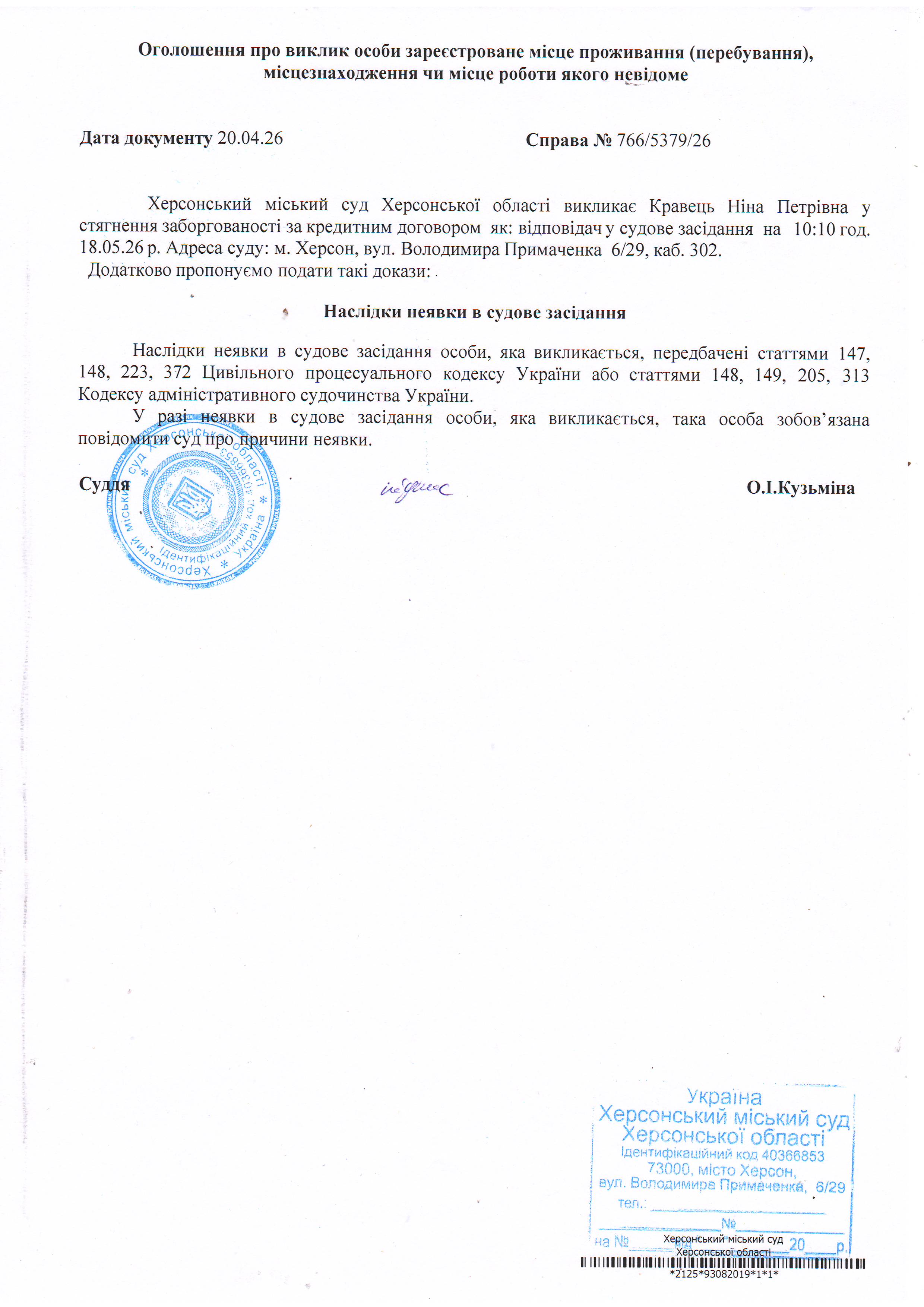 ОГОЛОШЕННЯ ПРО ВИКЛИК ДО СУДУ