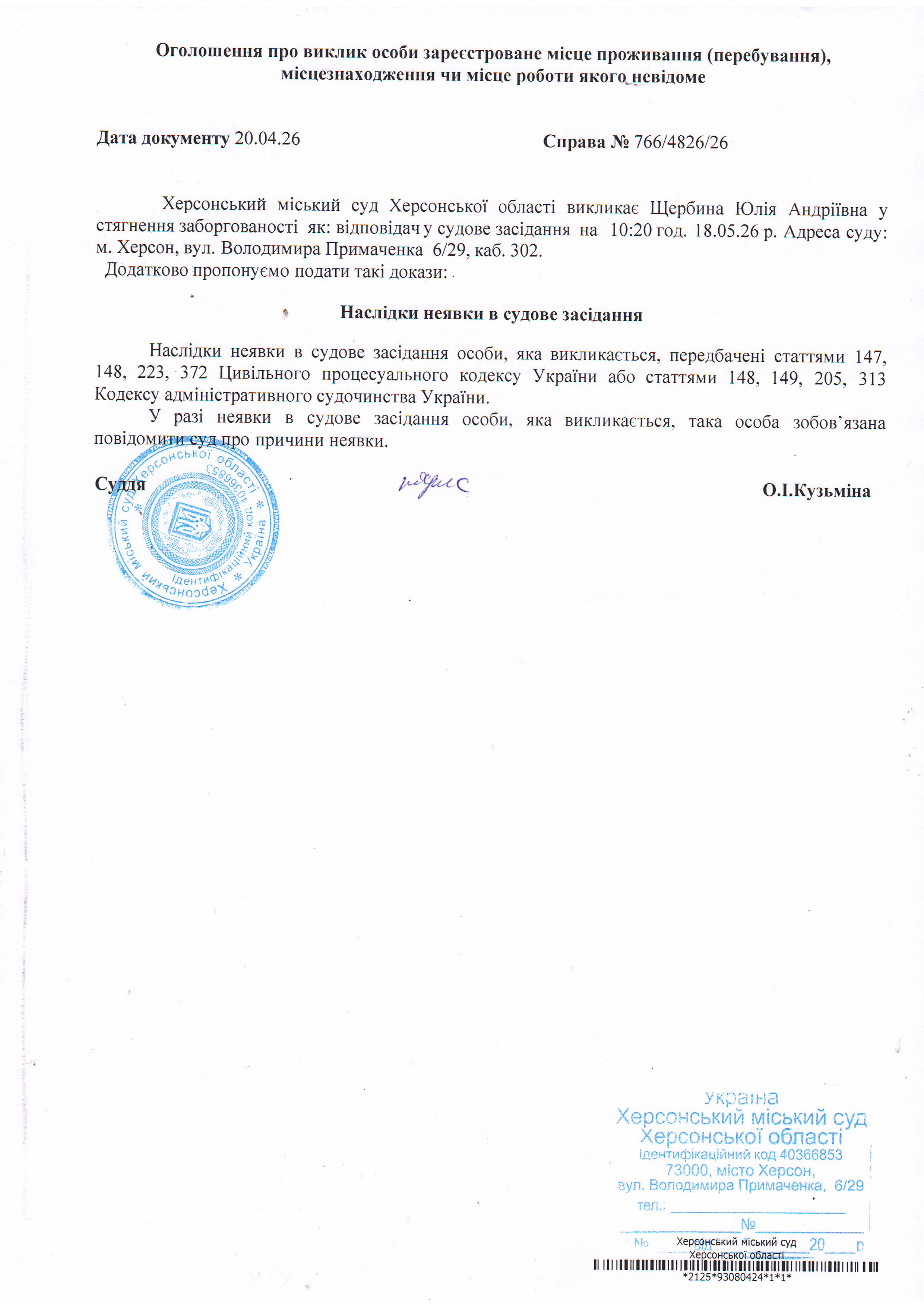 ОГОЛОШЕННЯ ПРО ВИКЛИК ДО СУДУ