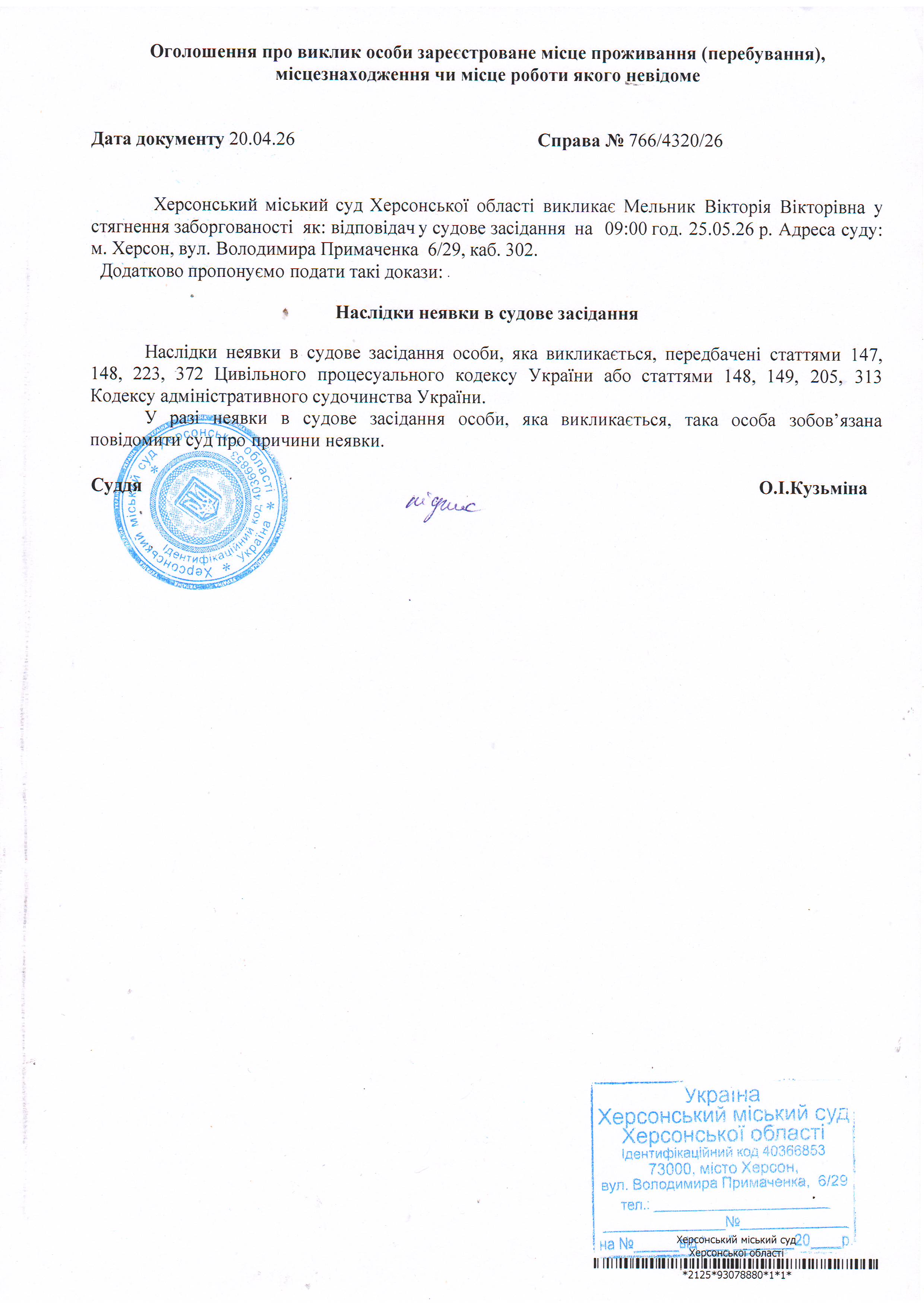 ОГОЛОШЕННЯ ПРО ВИКЛИК ДО СУДУ