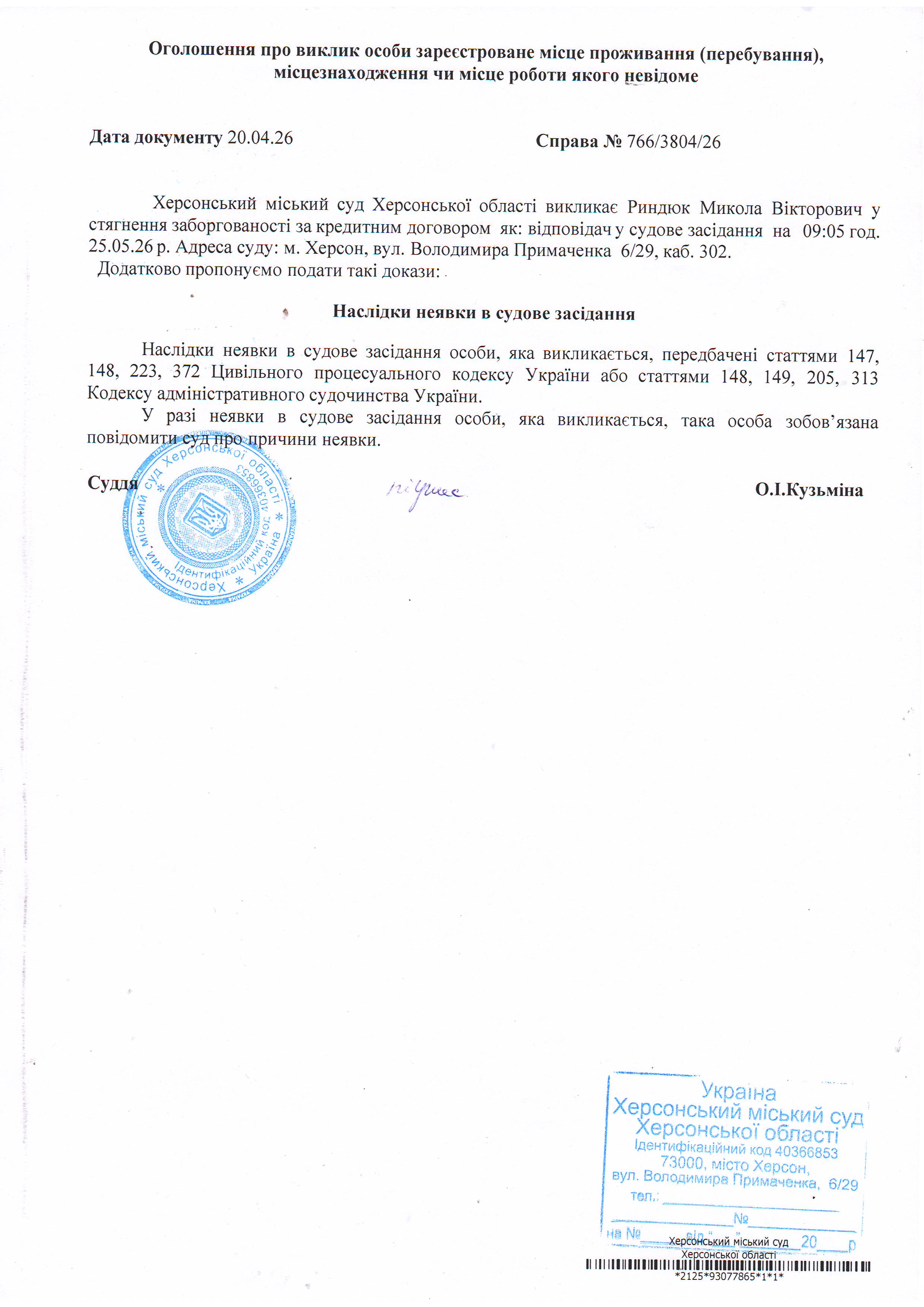 ОГОЛОШЕННЯ ПРО ВИКЛИК ДО СУДУ