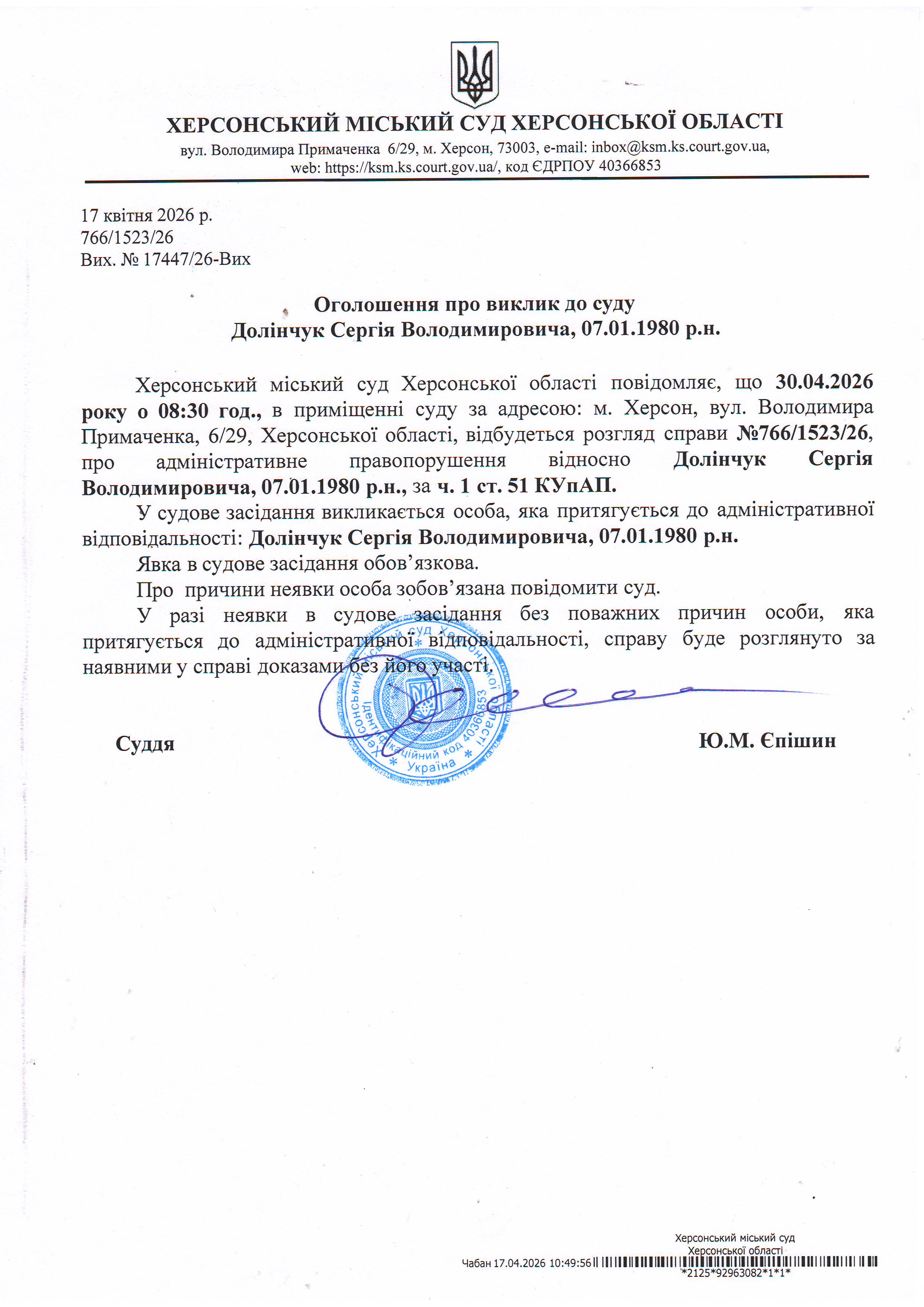 ОГОЛОШЕННЯ ПРО ВИКЛИК ДО СУДУ