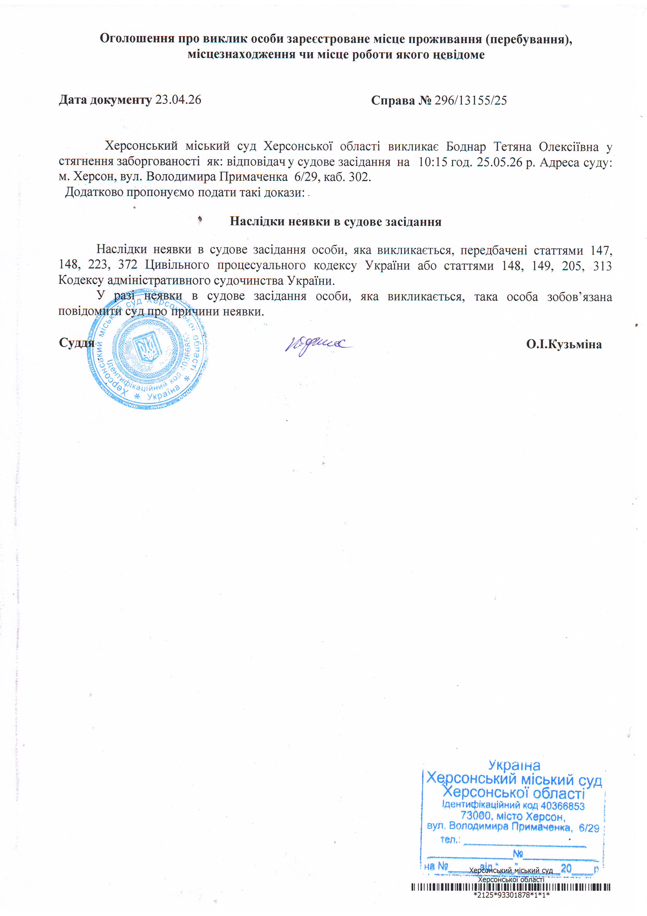 ОГОЛОШЕННЯ ПРО ВИКЛИК ДО СУДУ