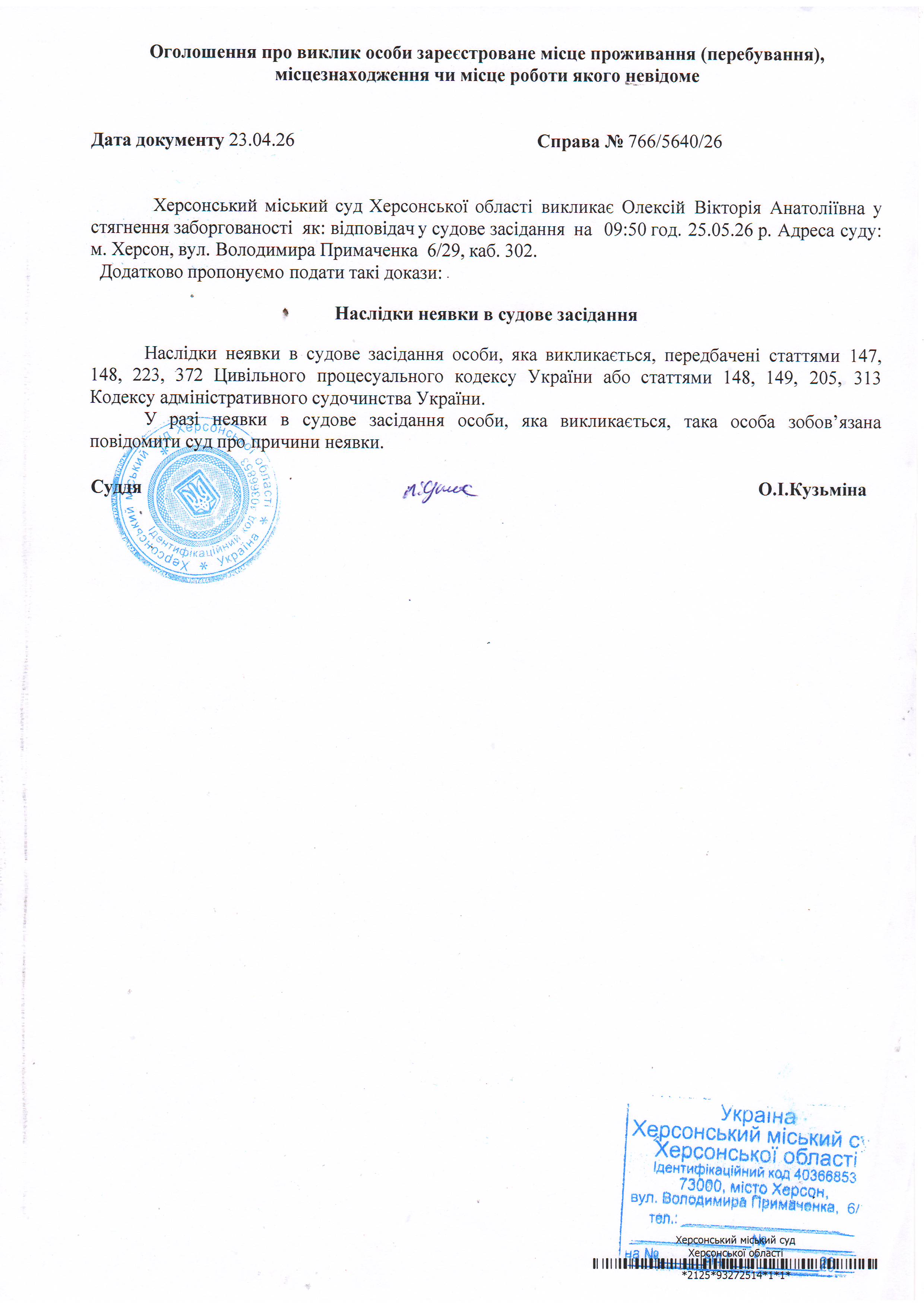 ОГОЛОШЕННЯ ПРО ВИКЛИК ДО СУДУ