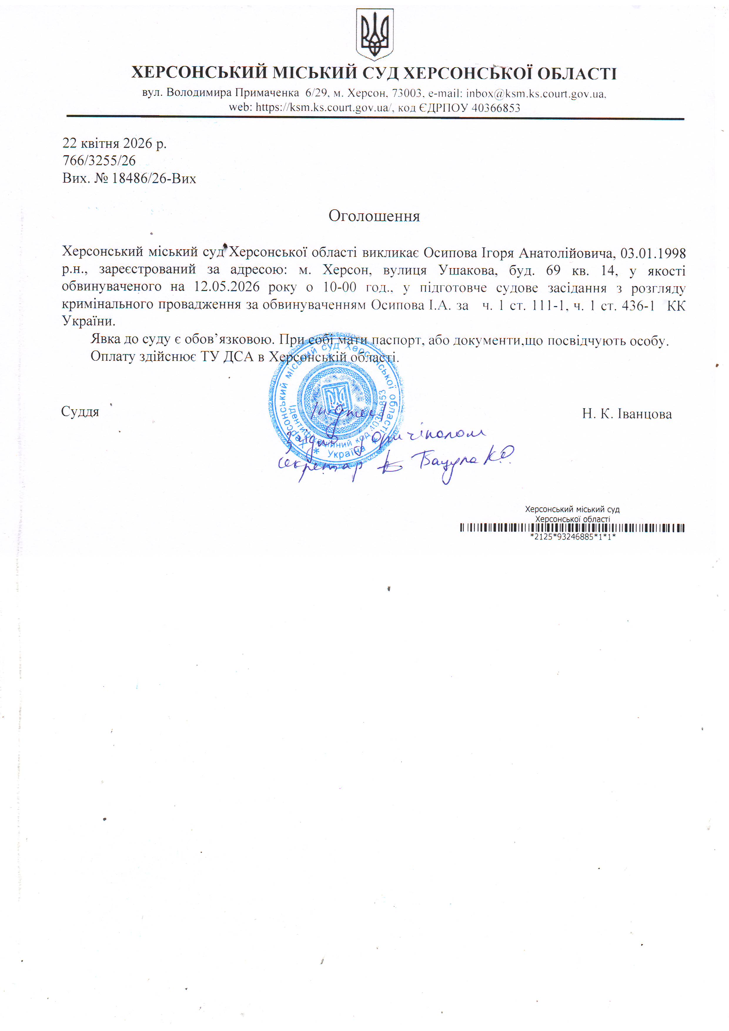 Оголошення про виклик особи в суд та повідомлення про судове рішення
