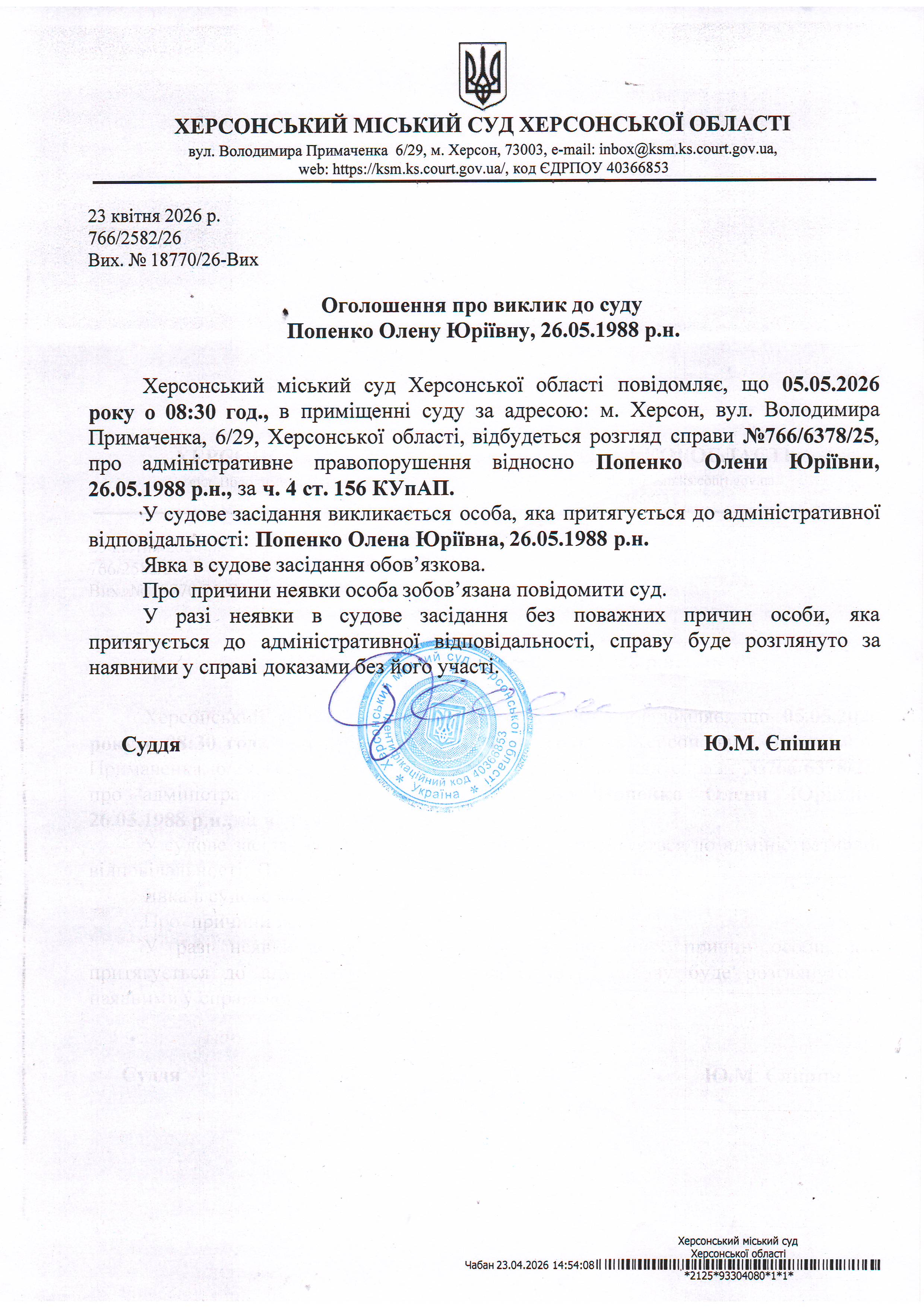 ОГОЛОШЕННЯ ПРО ВИКЛИК ДО СУДУ