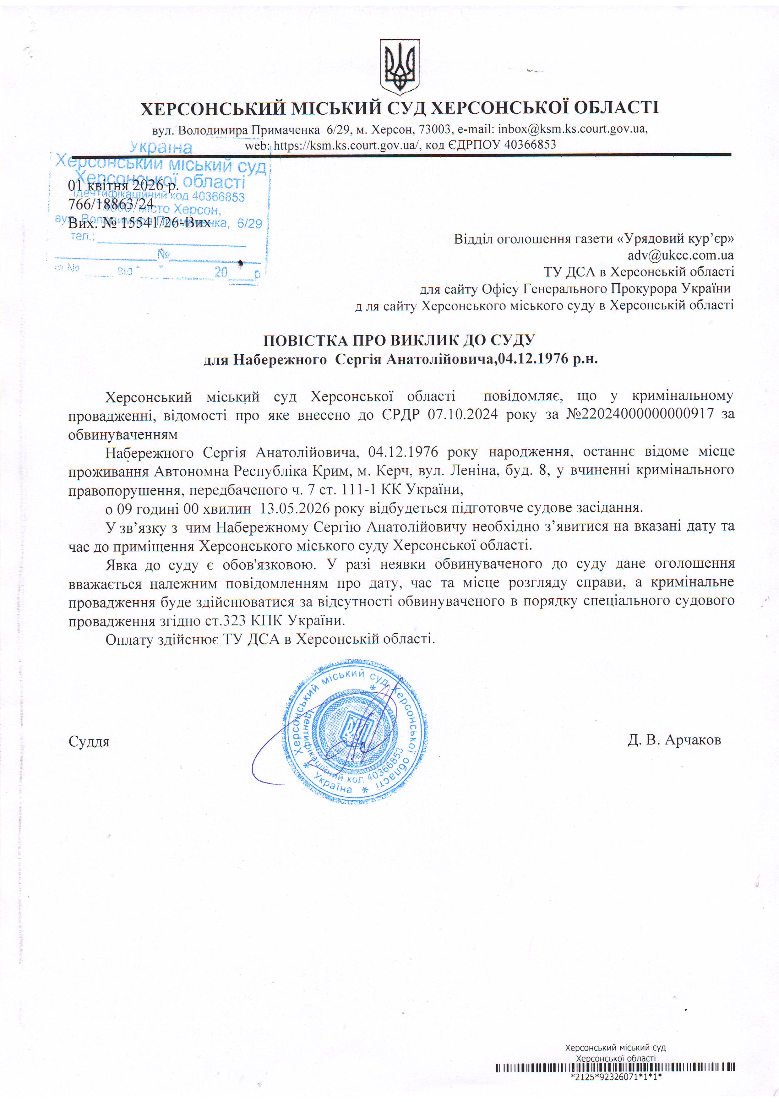 ОГОЛОШЕННЯ ПРО ВИКЛИК ДО СУДУ