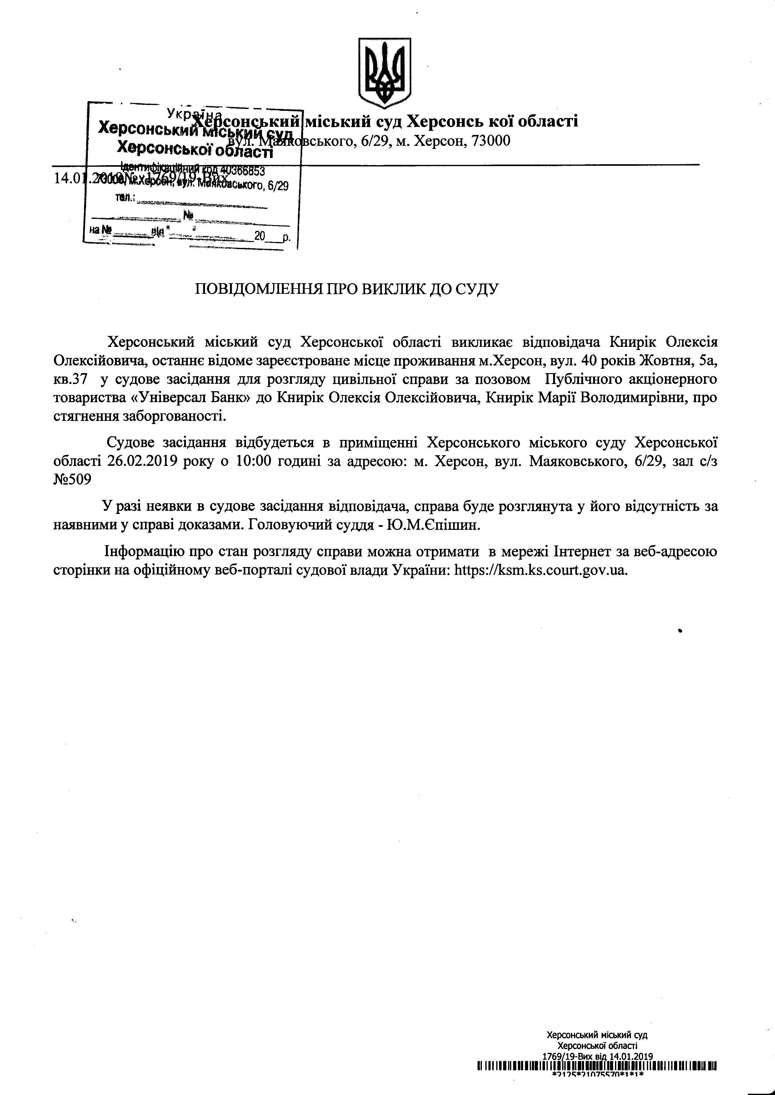 ОГОЛОШЕННЯ для Книрік Олексія Олексійовича