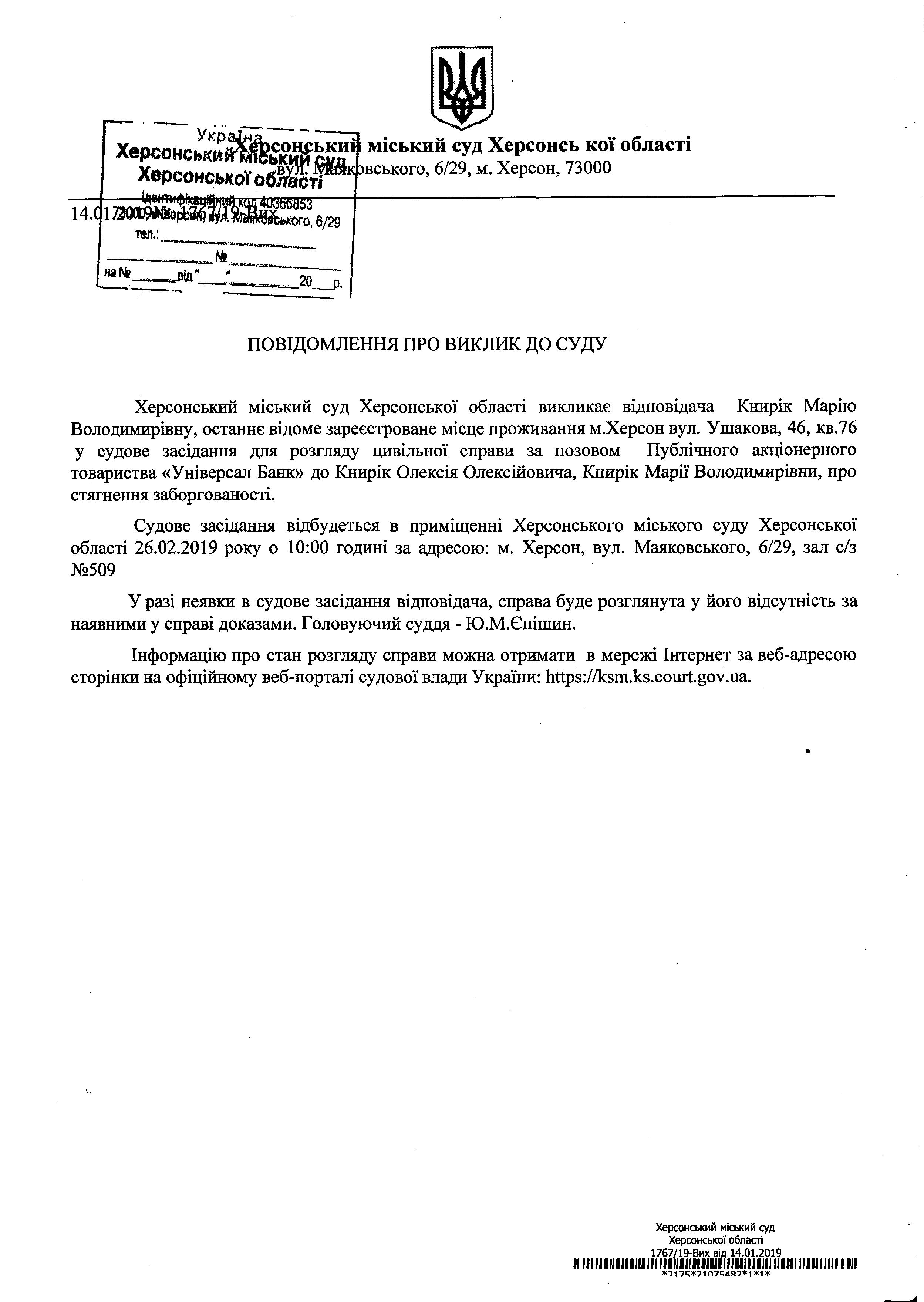 ОГОЛОШЕННЯ для Книрік Марії Володимирівни