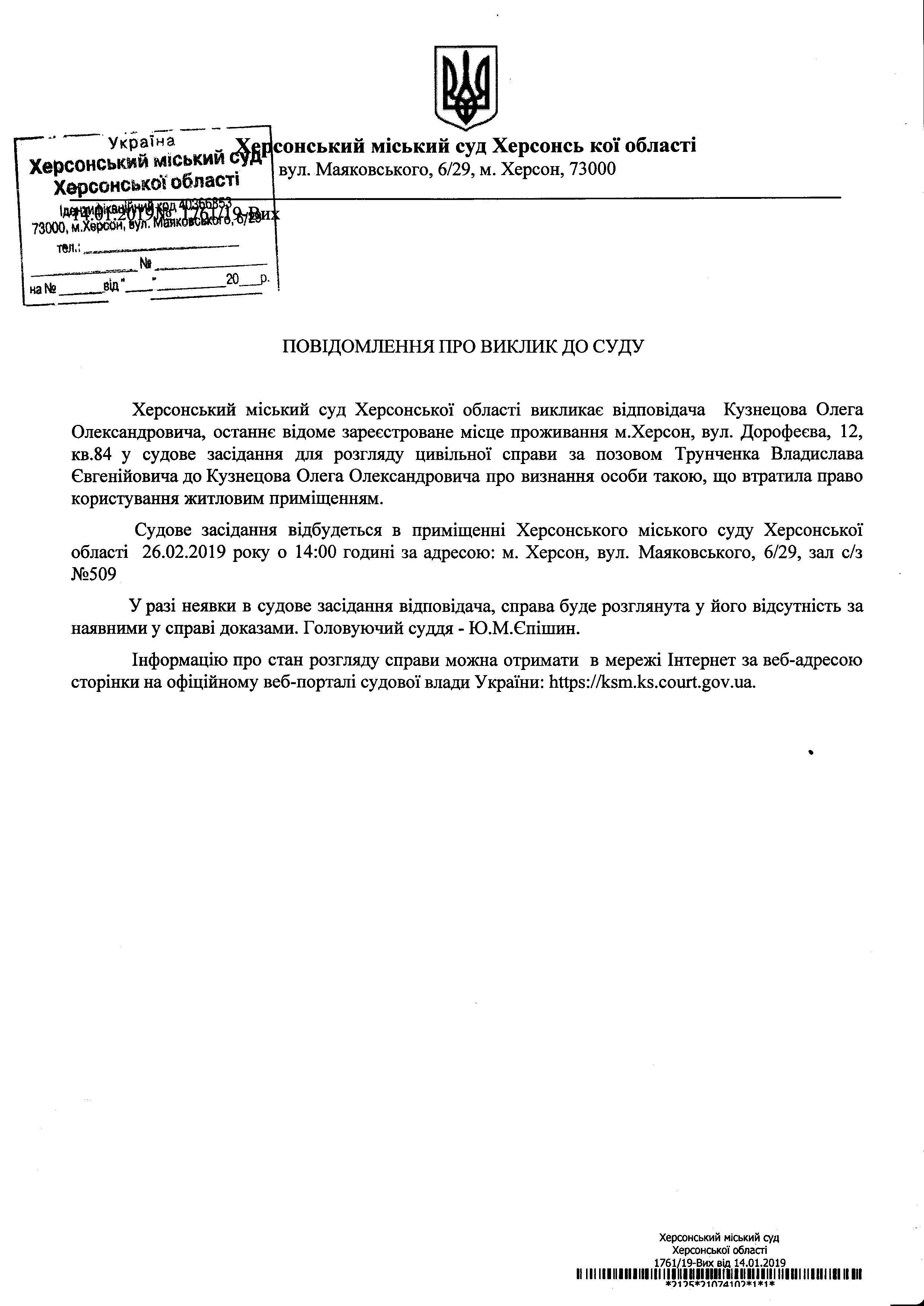 ОГОЛОШЕННЯ для Кузнецова Олега Олександровича