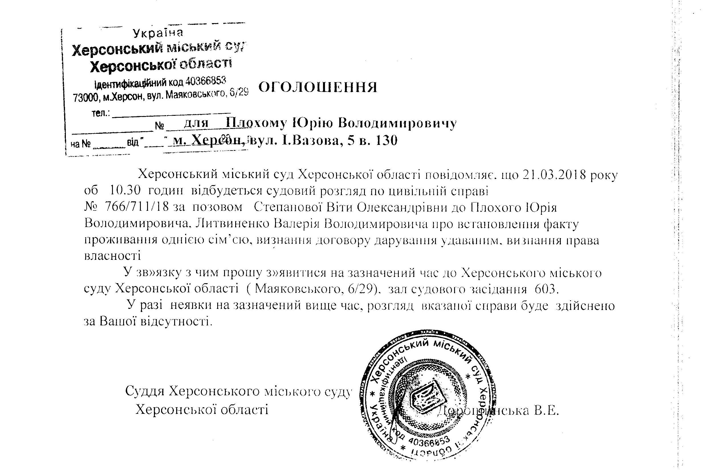 ОГОЛОШЕННЯ для Плохого Юрія Володимировича