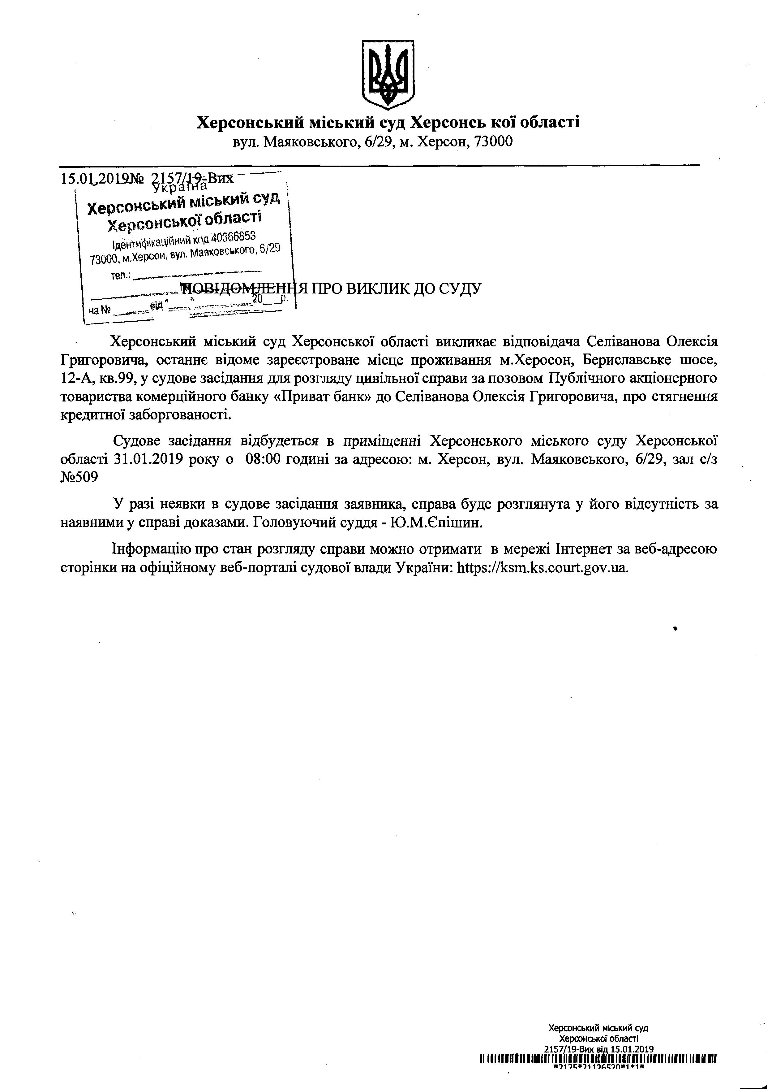 ОГОЛОШЕННЯ для Селіванова Олексія Григоровича