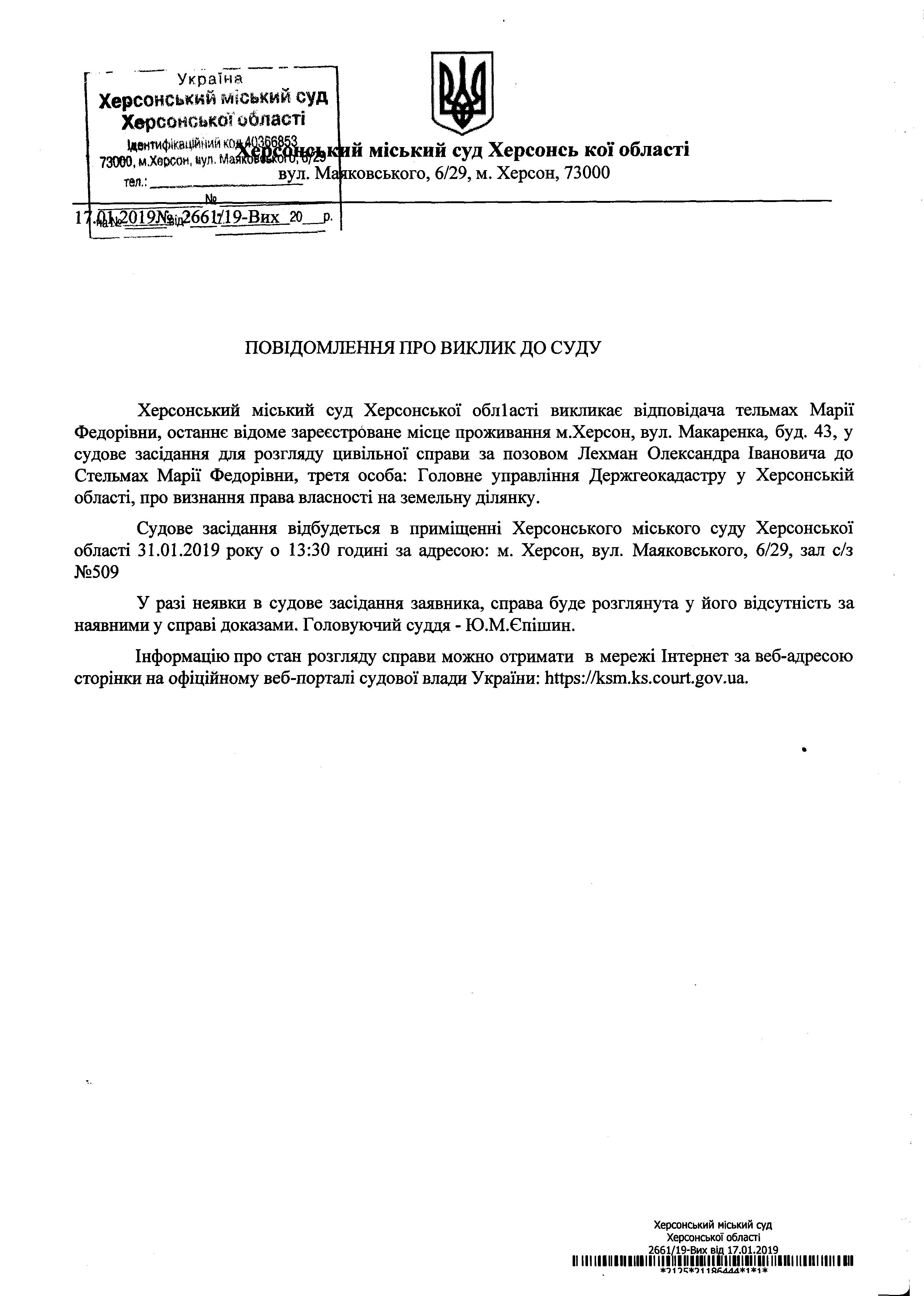 ОГОЛОШЕННЯ для Тельмах Марії Федорівни