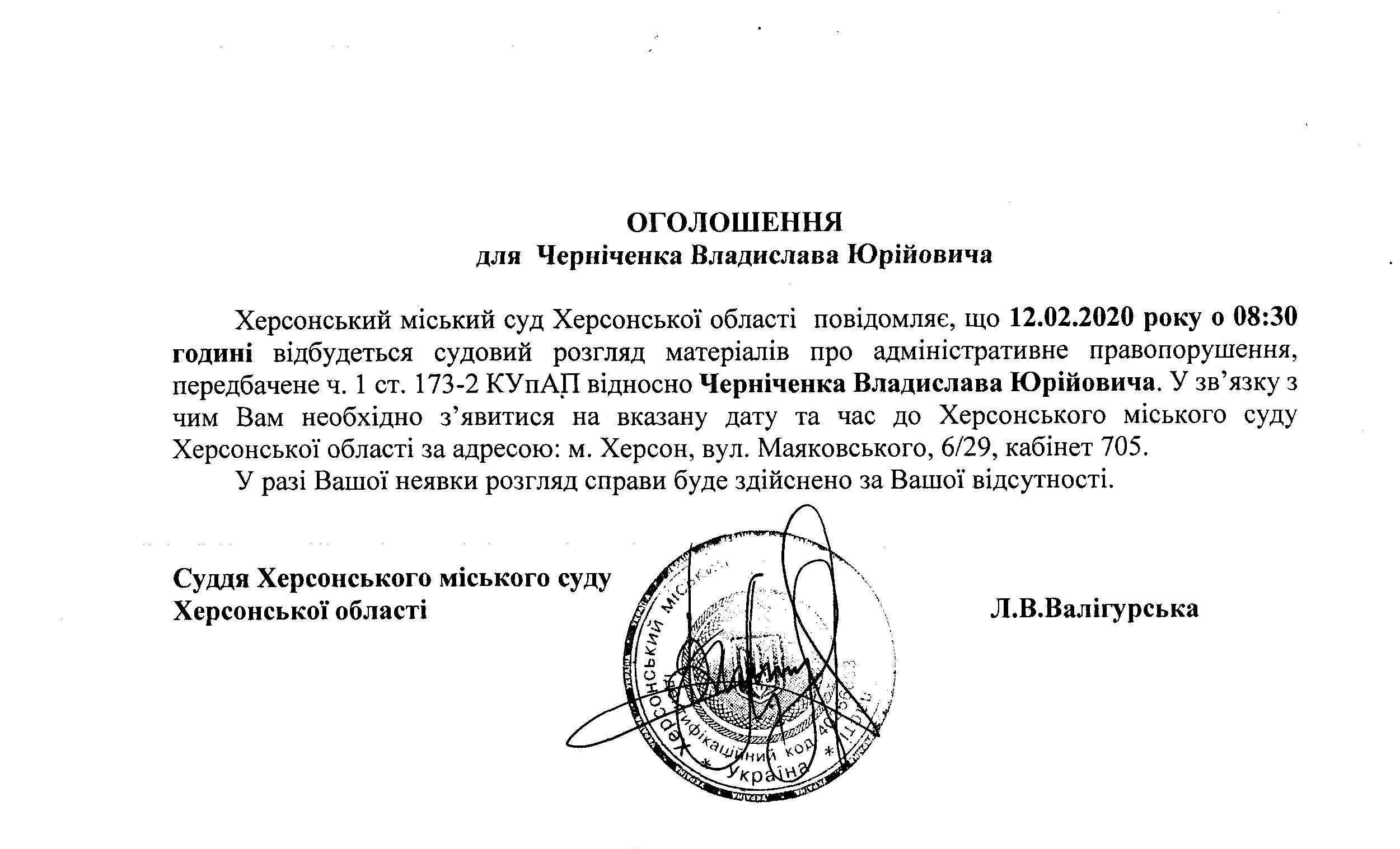 ОГОЛОШЕННЯ для Черніченка Владислава Юрійовича
