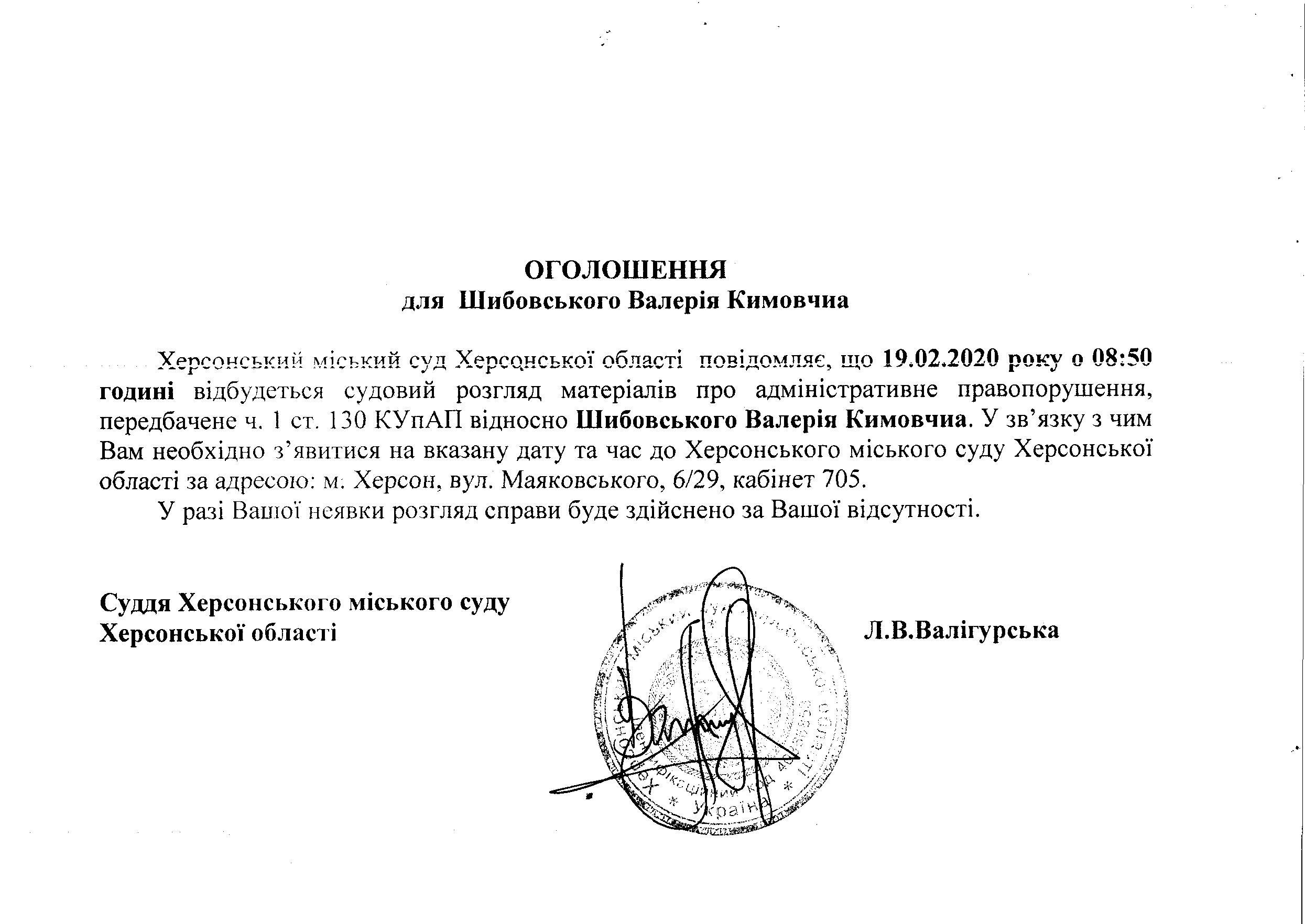 ОГОЛОШЕННЯ для Шибовського Валерія Кимовчиа