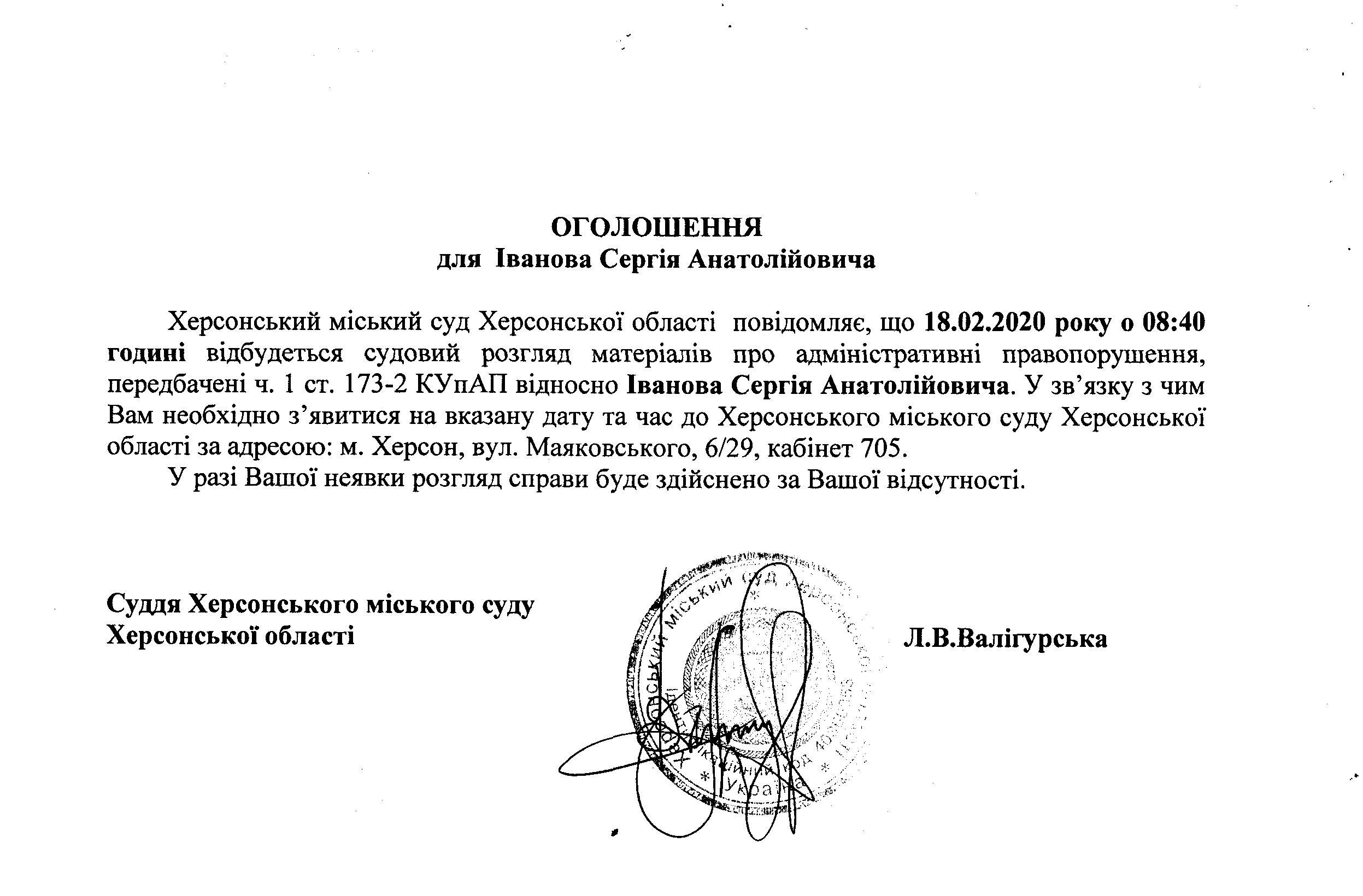 ОГОЛОШЕННЯ для Іванова Сергія Анатолійовича