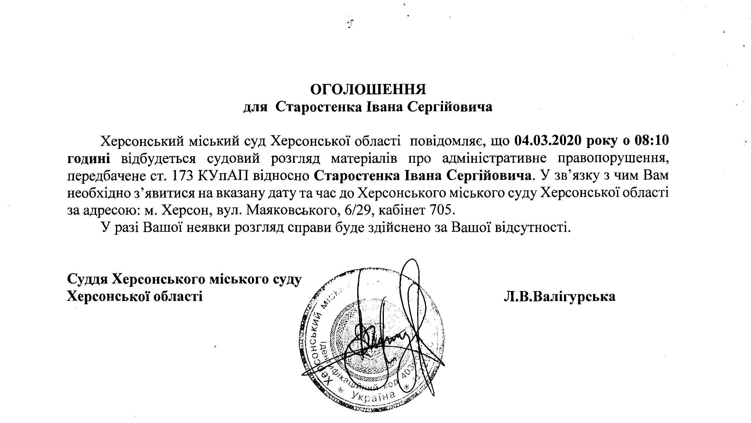 ОГОЛОШЕННЯ для Старостенка Івана Сергійовича