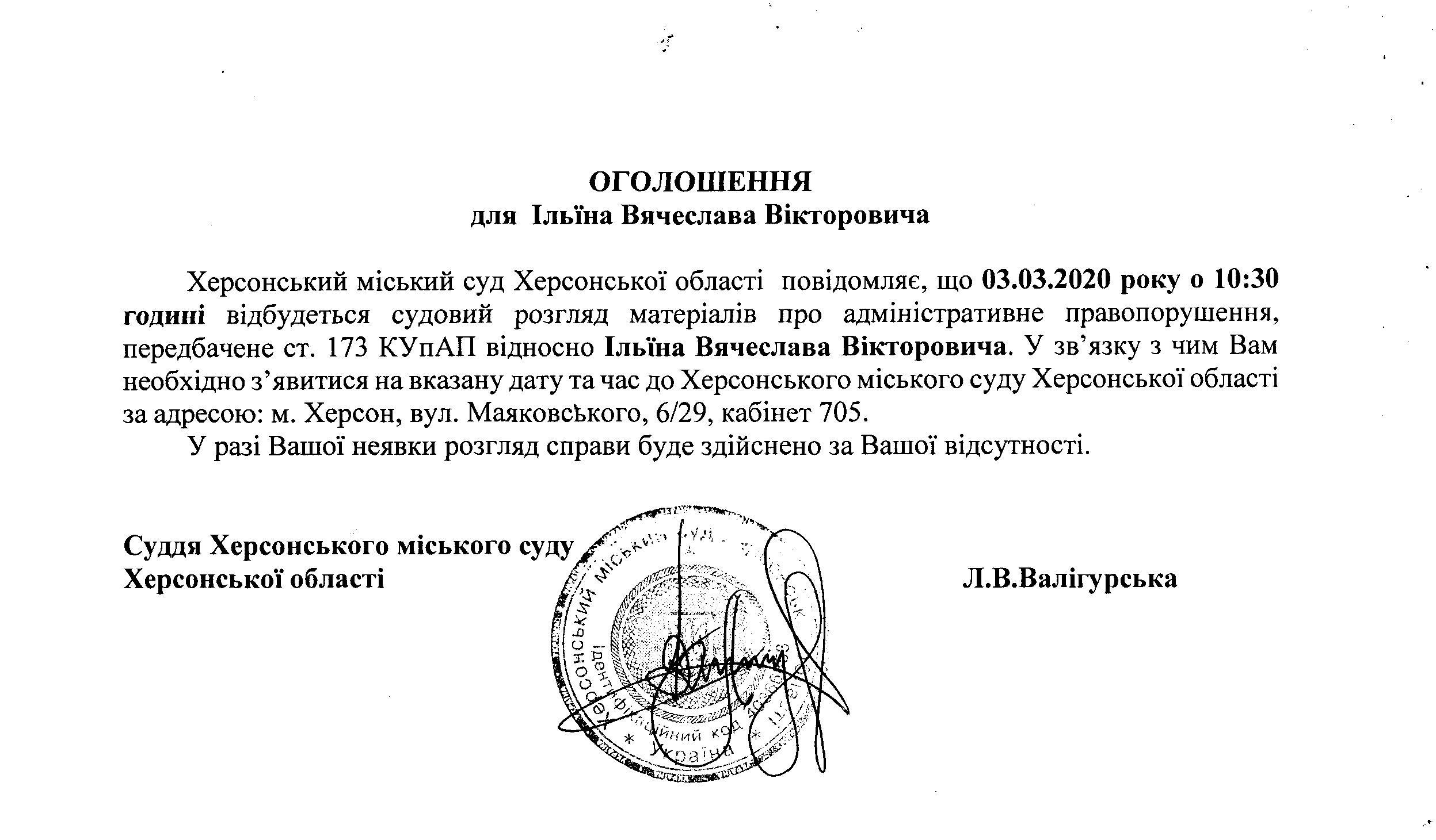 ОГОЛОШЕННЯ для Ільїна Вячеслава Вікторовича
