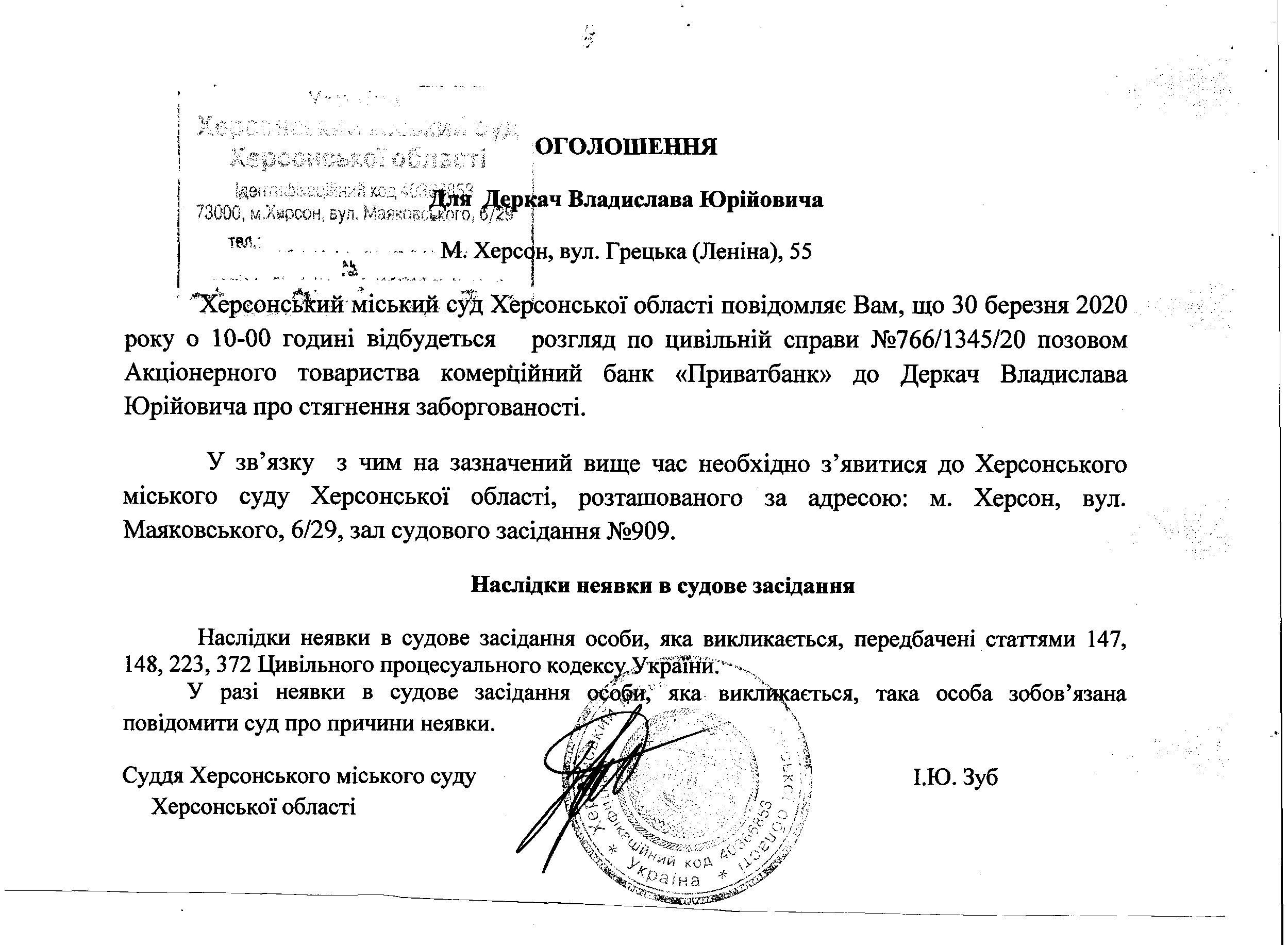 ОГОЛОШЕННЯ ПРО ВИКЛИК ДО СУДУ