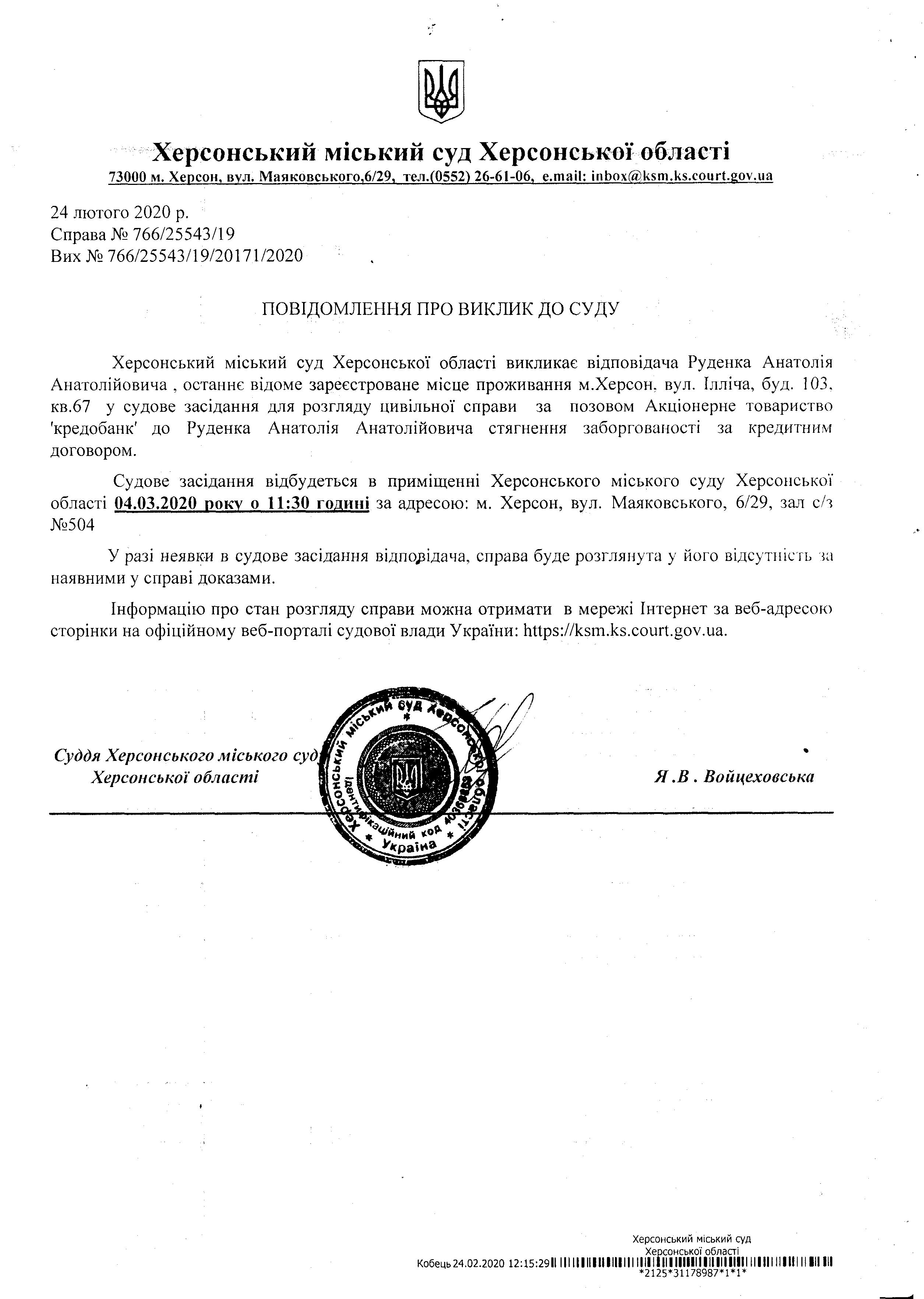 ОГОЛОШЕННЯ ПРО ВИКЛИК ДО СУДУ