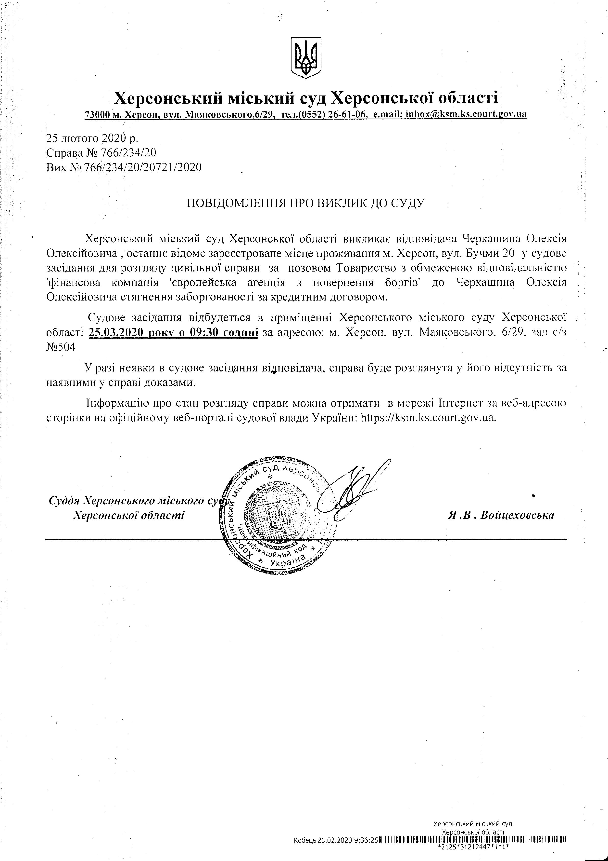 ОГОЛОШЕННЯ ПРО ВИКЛИК ДО СУДУ