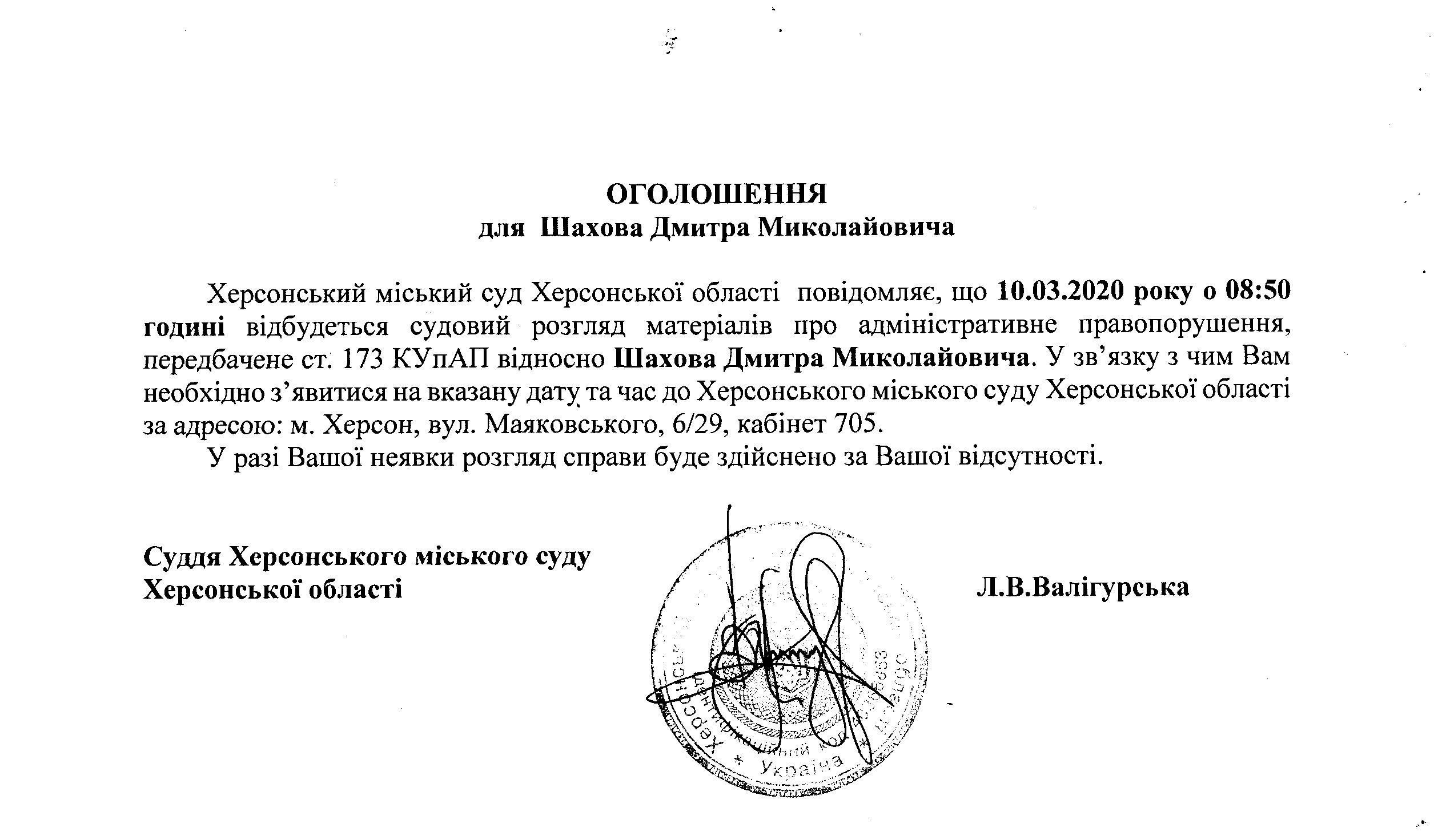 ОГОЛОШЕННЯ для Шахова Дмитра Миколайовича