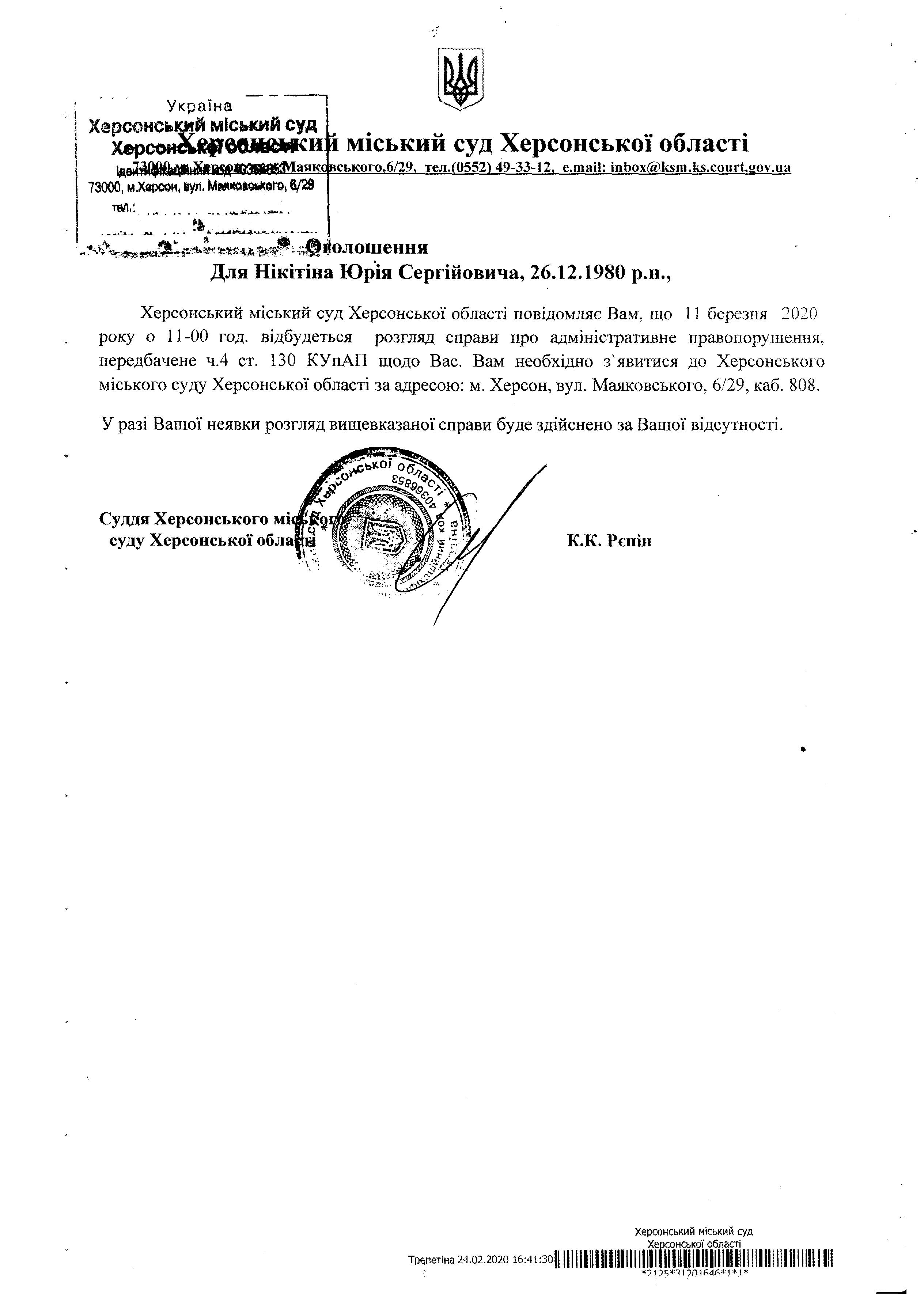ОГОЛОШЕННЯ для Нікітіна Юрія Сергійовича