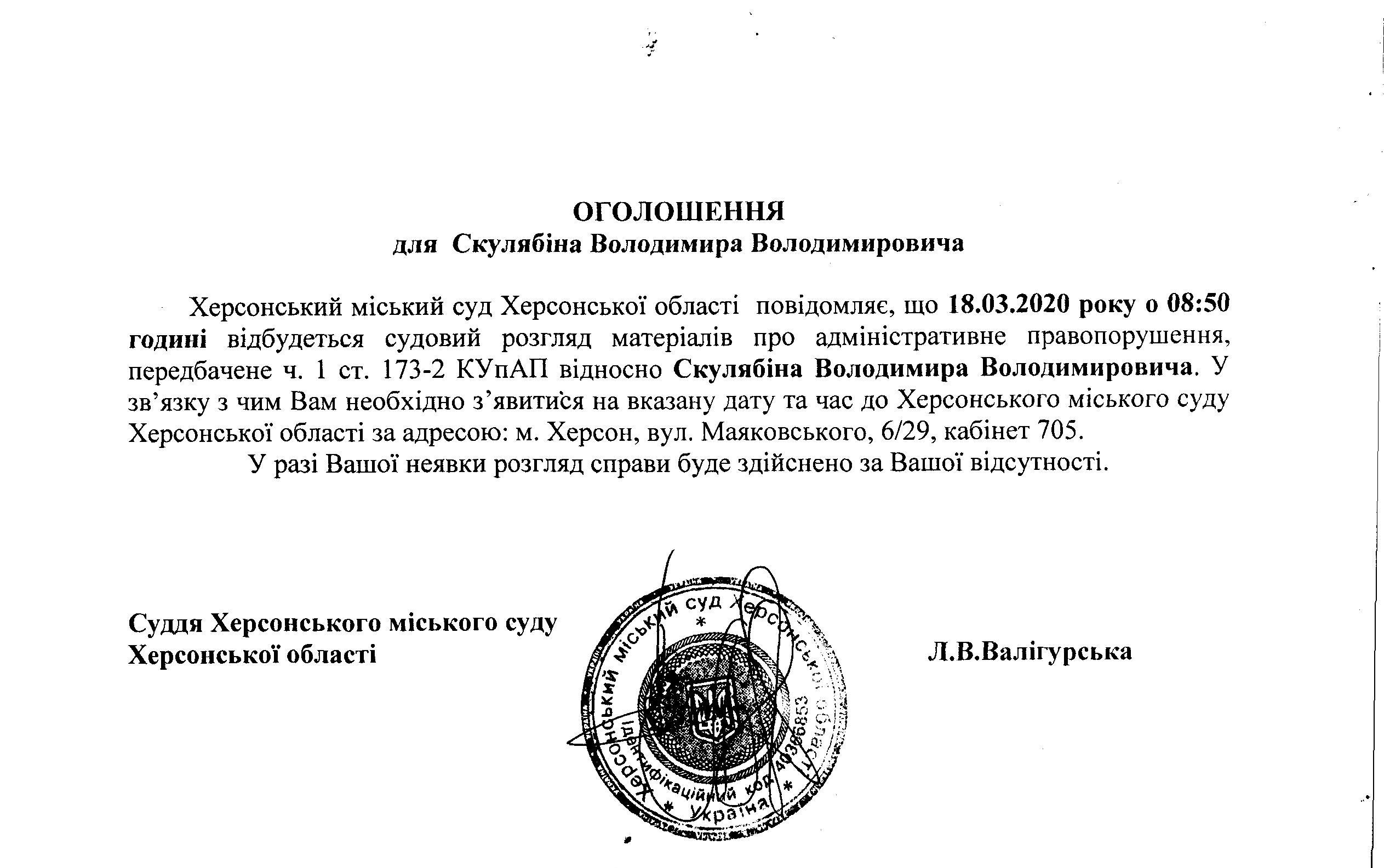 ОГОЛОШЕННЯ для Скулябіна Володимира Володимировича