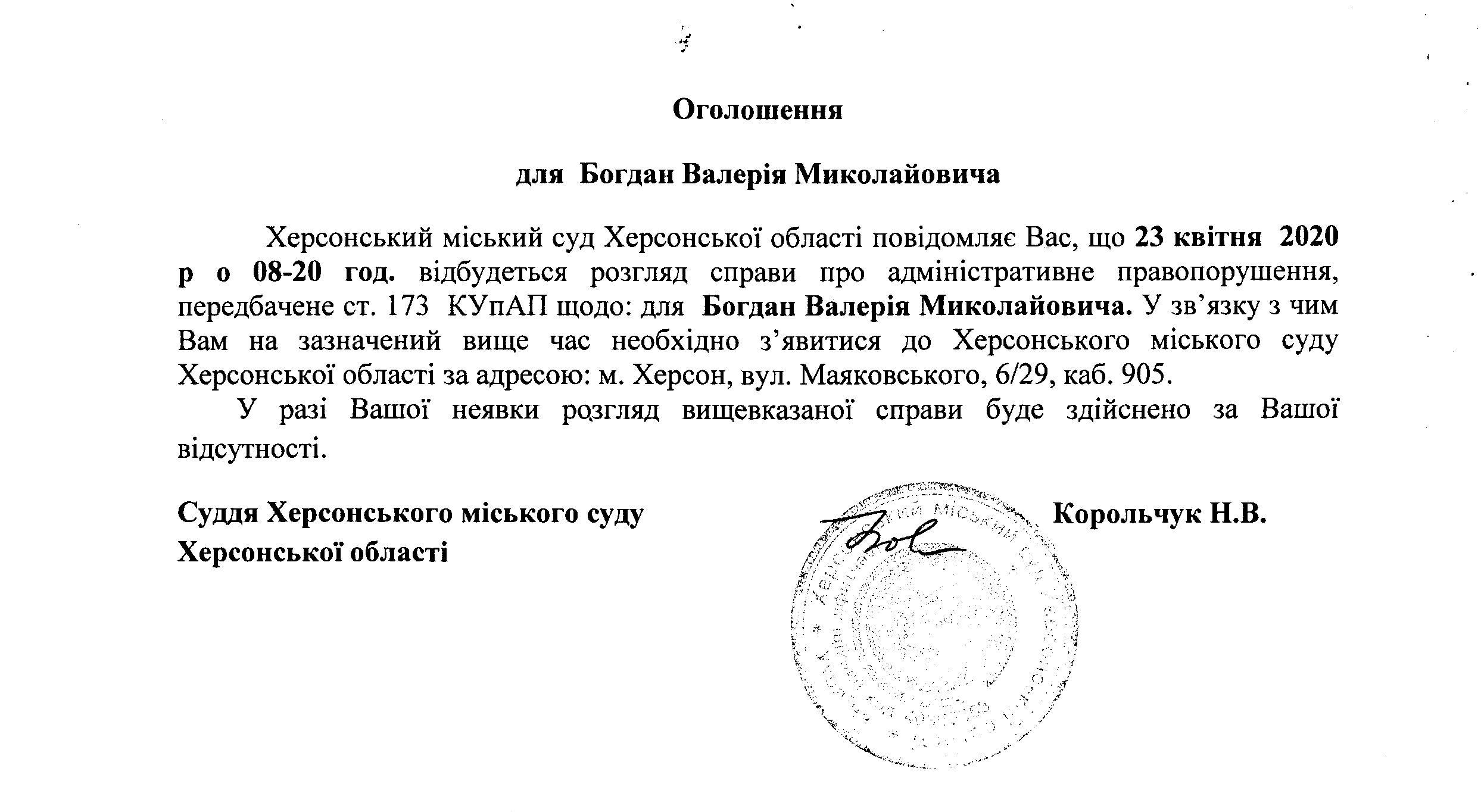 ОГОЛОШЕННЯ ПРО ВИКЛИК ДО СУДУ