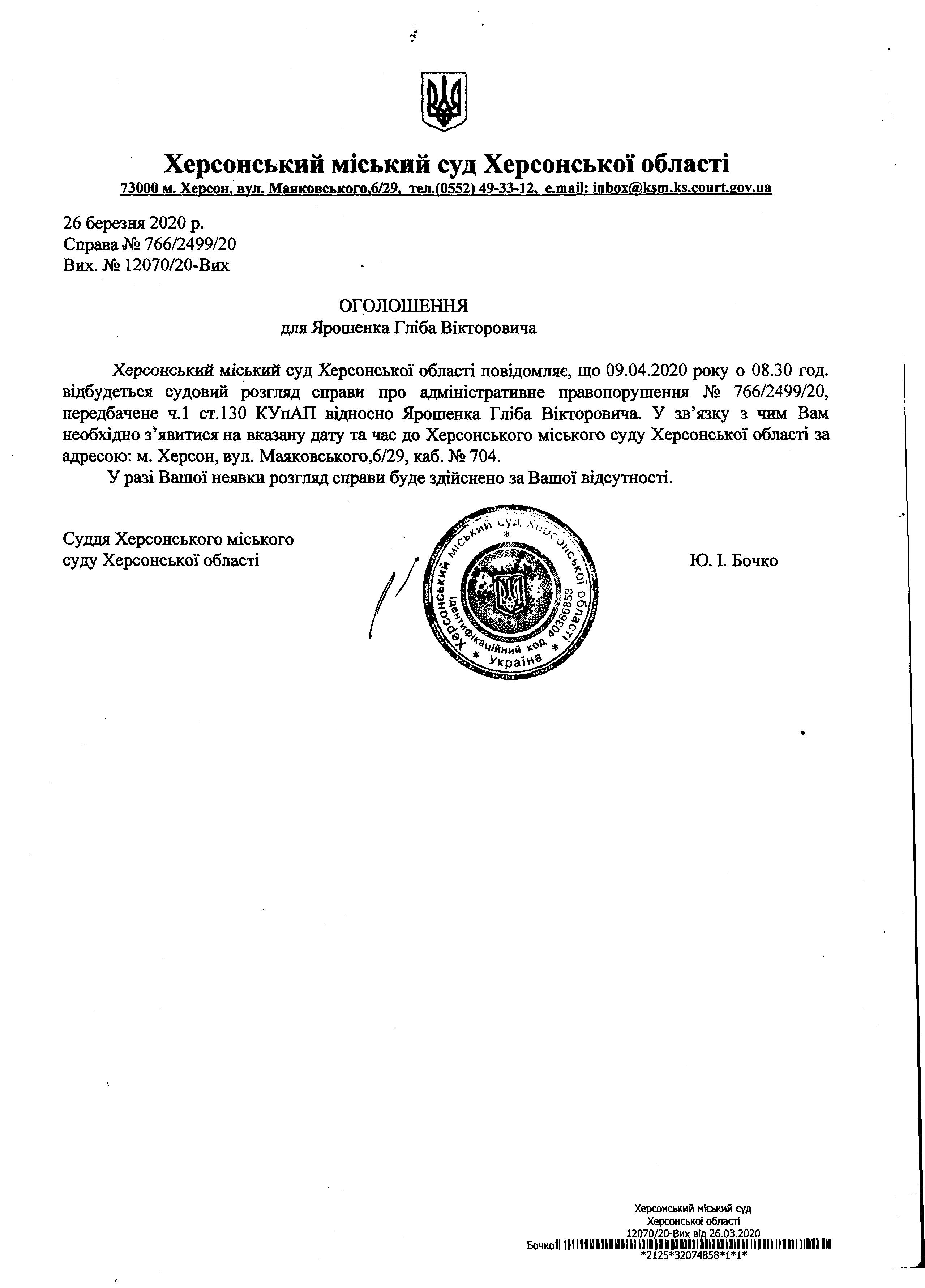 ОГОЛОШЕННЯ для Ярошенка Гліба Вікторовича
