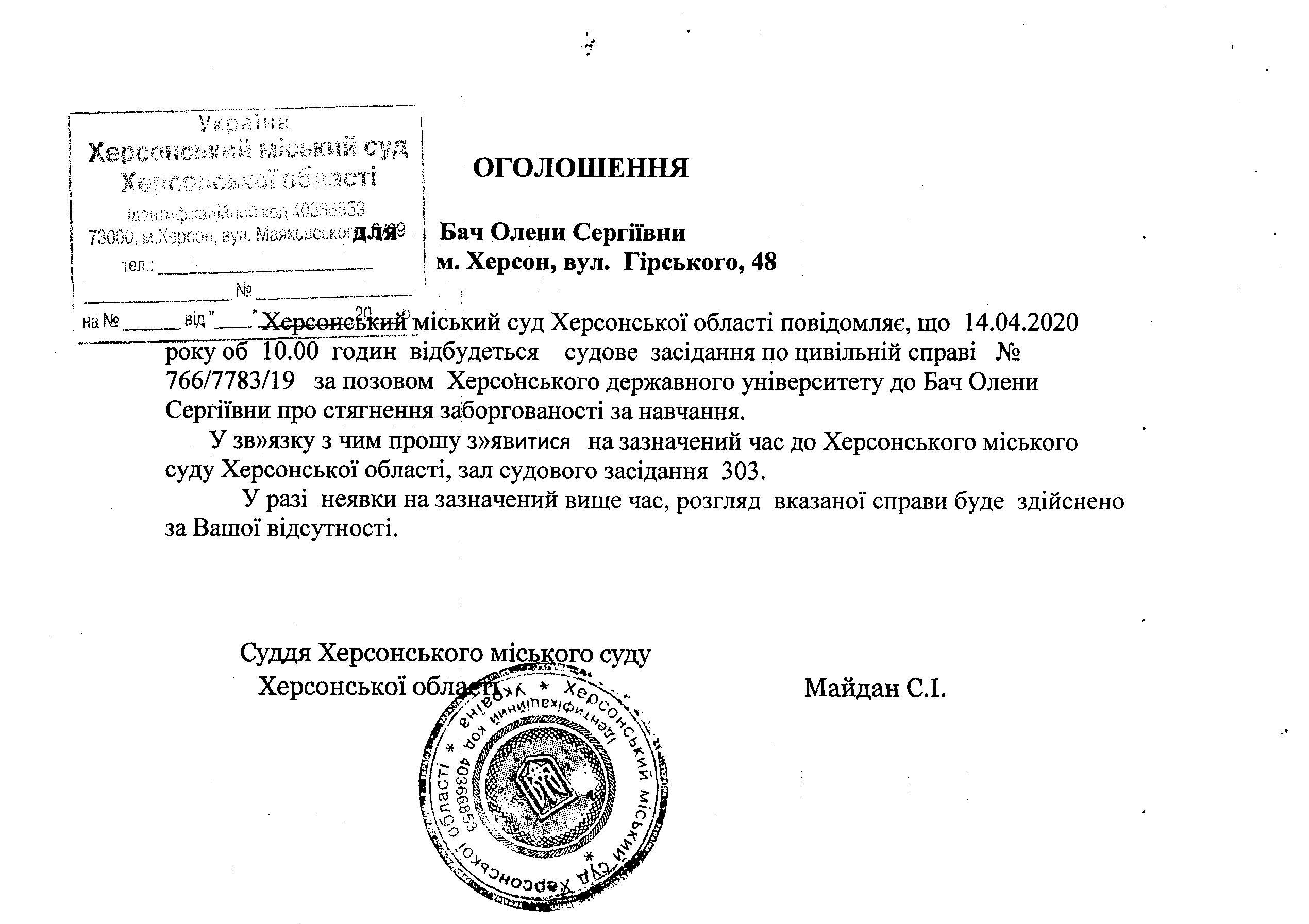 ОГОЛОШЕННЯ ПРО ВИКЛИК ДО СУДУ