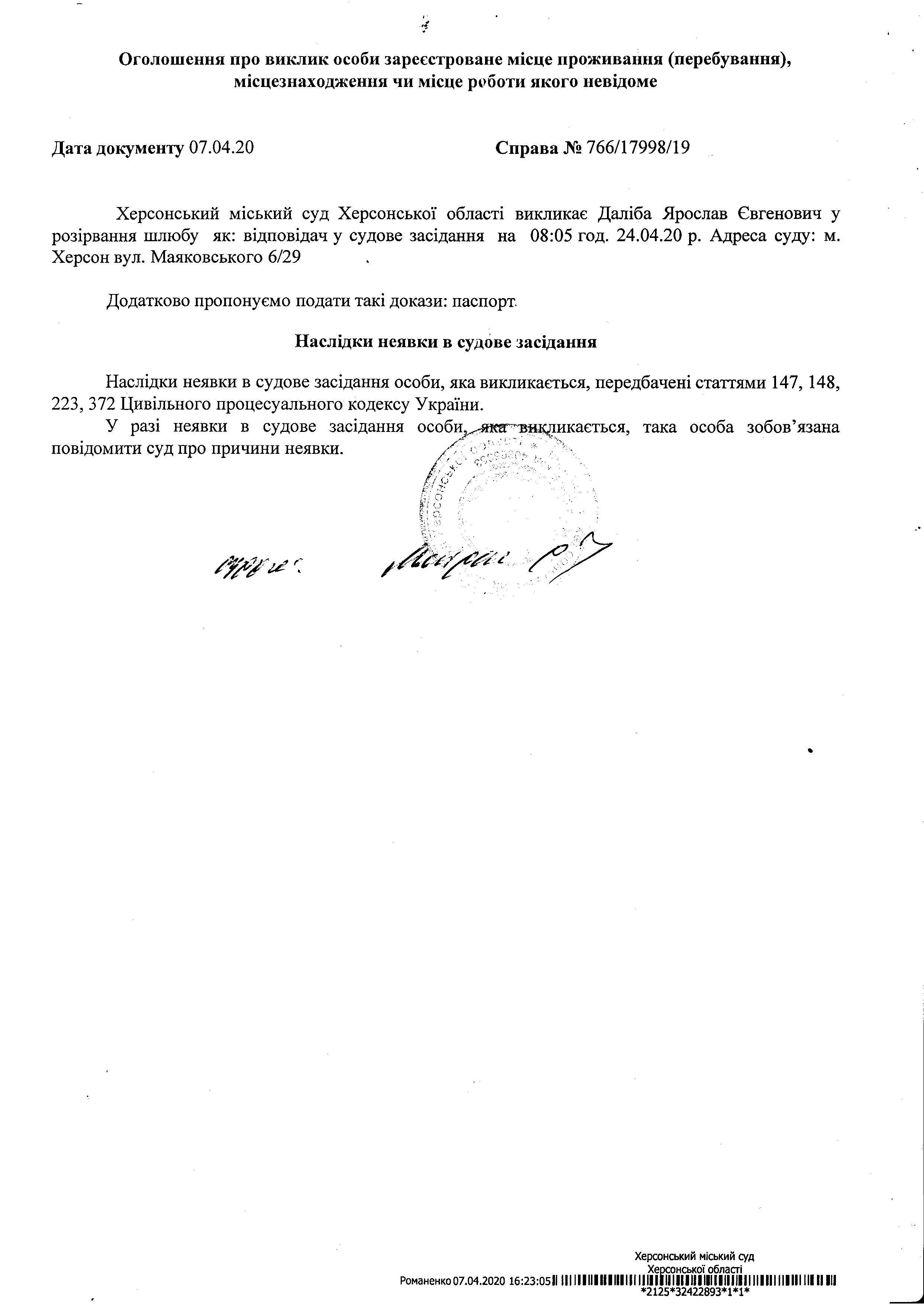 ОГОЛОШЕННЯ ПРО ВИКЛИК ДО СУДУ