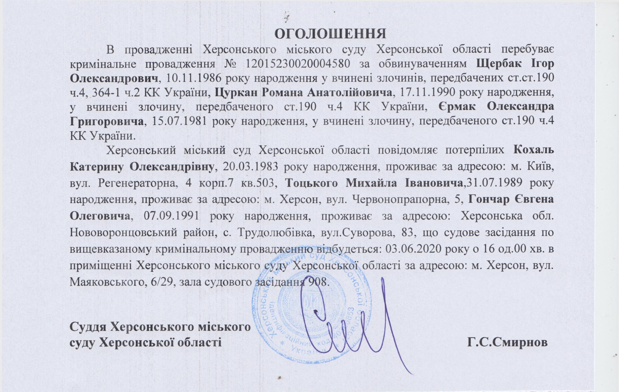 ОГОЛОШЕННЯ ПРО ВИКЛИК ДО СУДУ