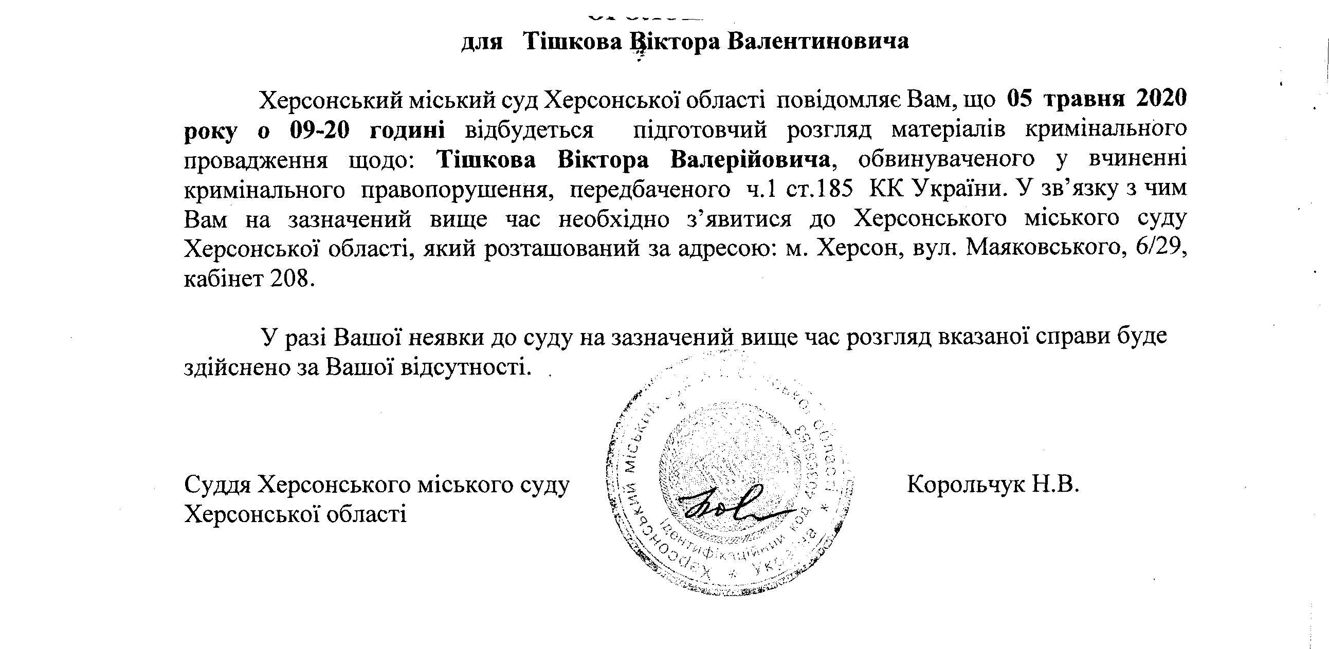 ОГОЛОШЕННЯ для Тішкова Віктора Валентиновича