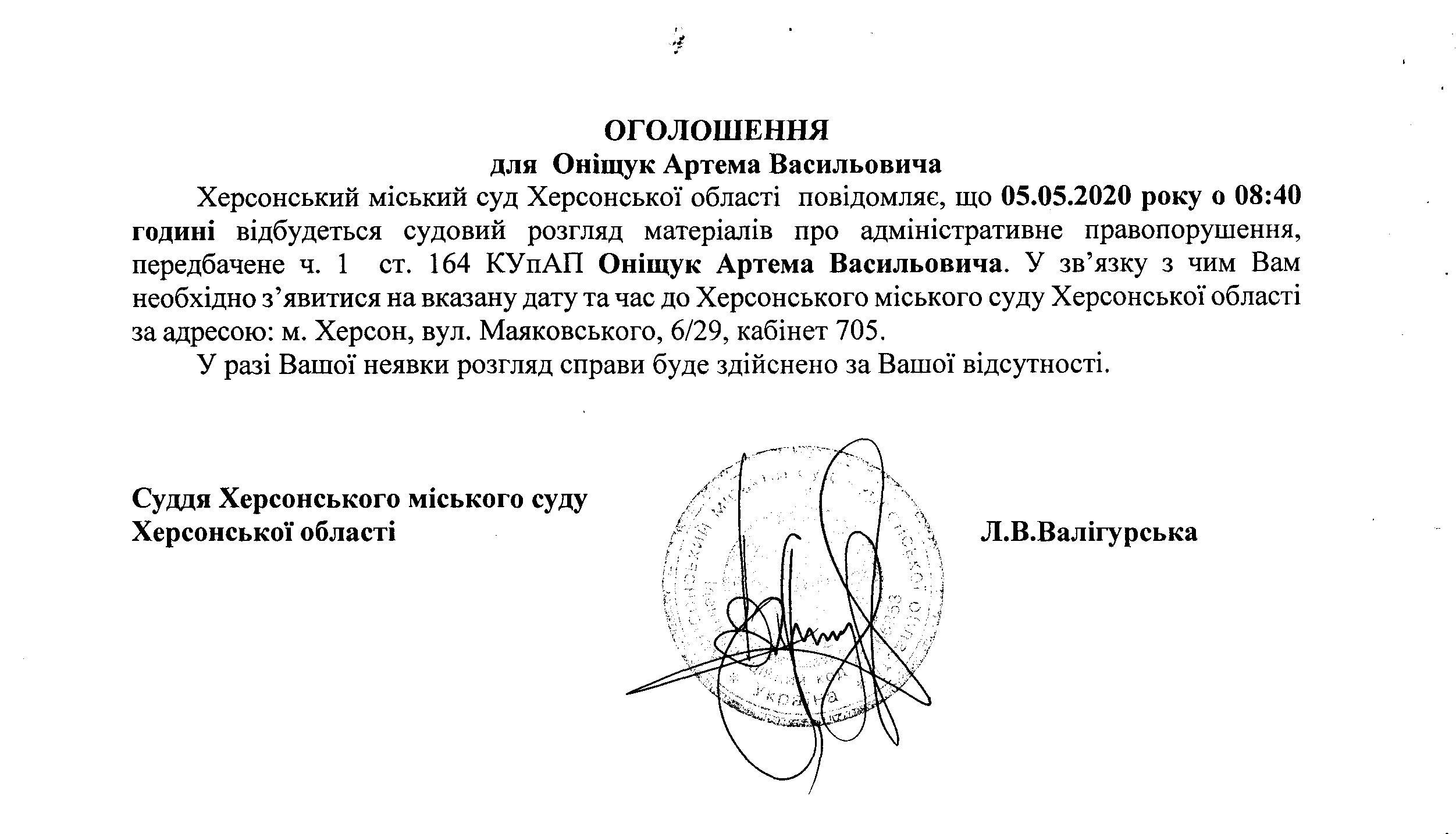 ОГОЛОШЕННЯ для Оніщука Артема Васильовича